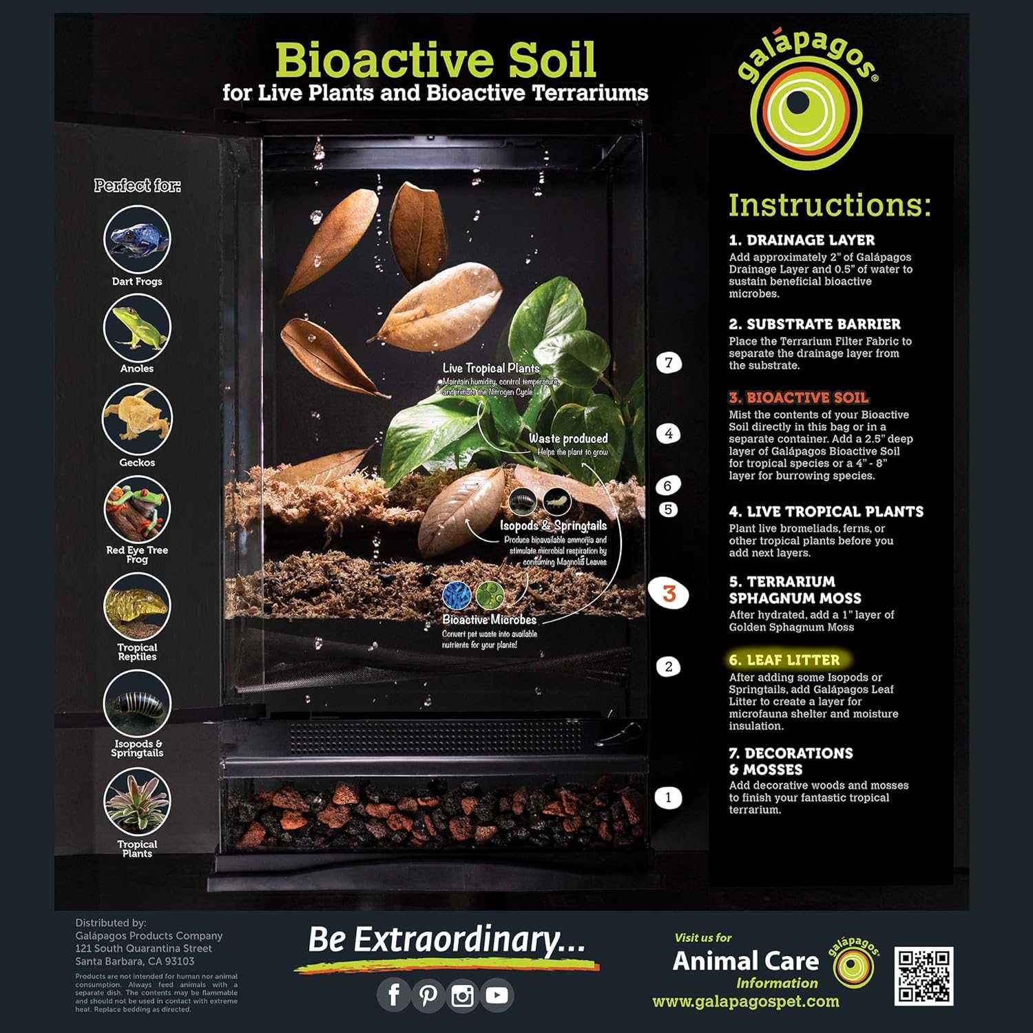Galápagos Natural Magnolia Leaf Litter, 4QT is a must-have for bioactive terrariums and vivariums, bringing nature indoors while providing essential environmental benefits for your pets. These 100% natural, sustainably sourced Magnolia leaves break down over time, releasing organic nutrients that nourish your plants and microfauna like isopods, creating a balanced ecosystem. The large 6-8 inch leaves not only enhance the look of your terrarium but also provide essential shelter and camouflage for reptiles, amphibians, and invertebrates, including geckos, snakes, hermit crabs, and tortoises.