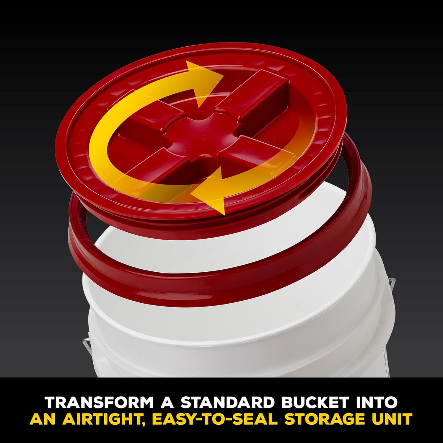 SMART FUNCTIONAL DESIGN: Turn any standard utility bucket into an airtight pet food storage container. Great for storing cat food, dog food, livestock feed, horse feed, bird feed, and more.. Fits standard 3.5, 5, 6, and 7-gallon buckets.
