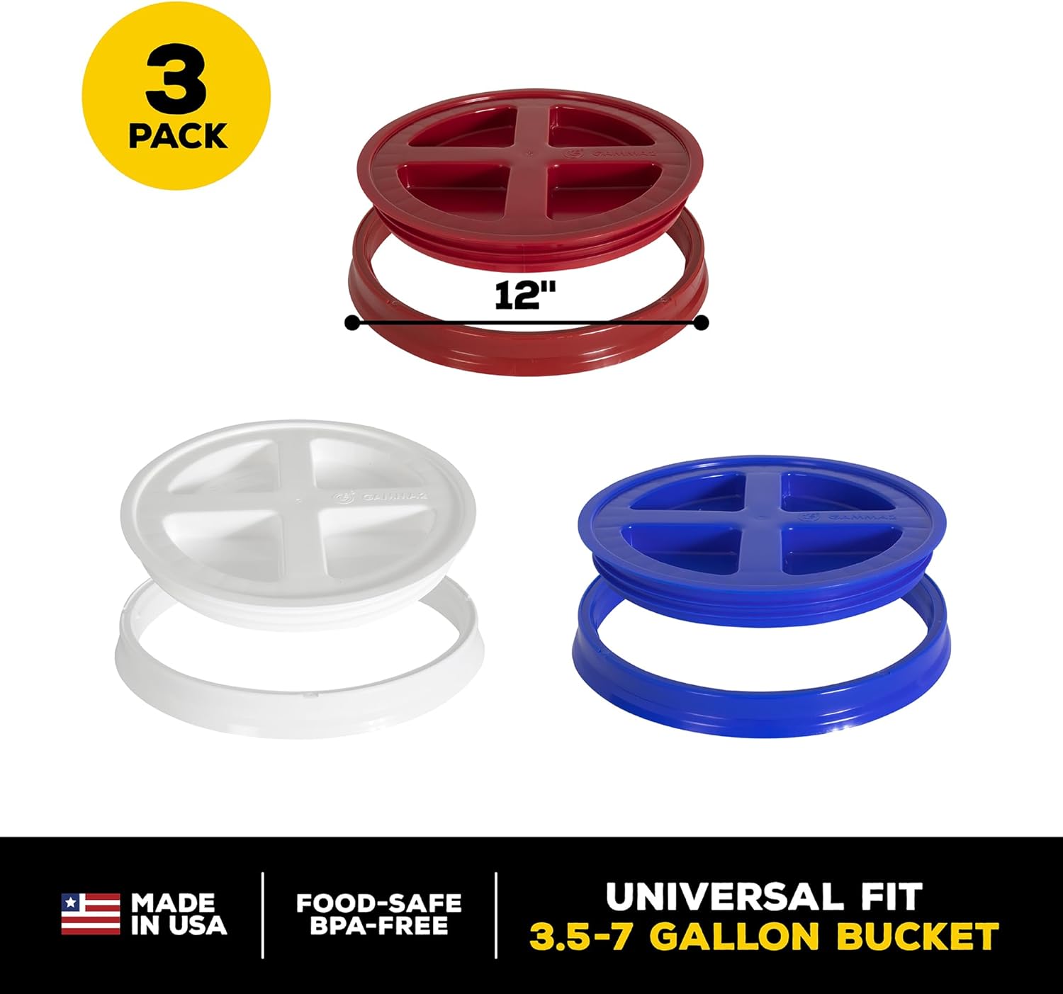 11 reviews for Gamma2 Gamma Seal Lid 3pk Combo for Utility Buckets – Fits 3.5, 5, 6 & 7 gallon buckets, Red, White & Blue, Made in USA