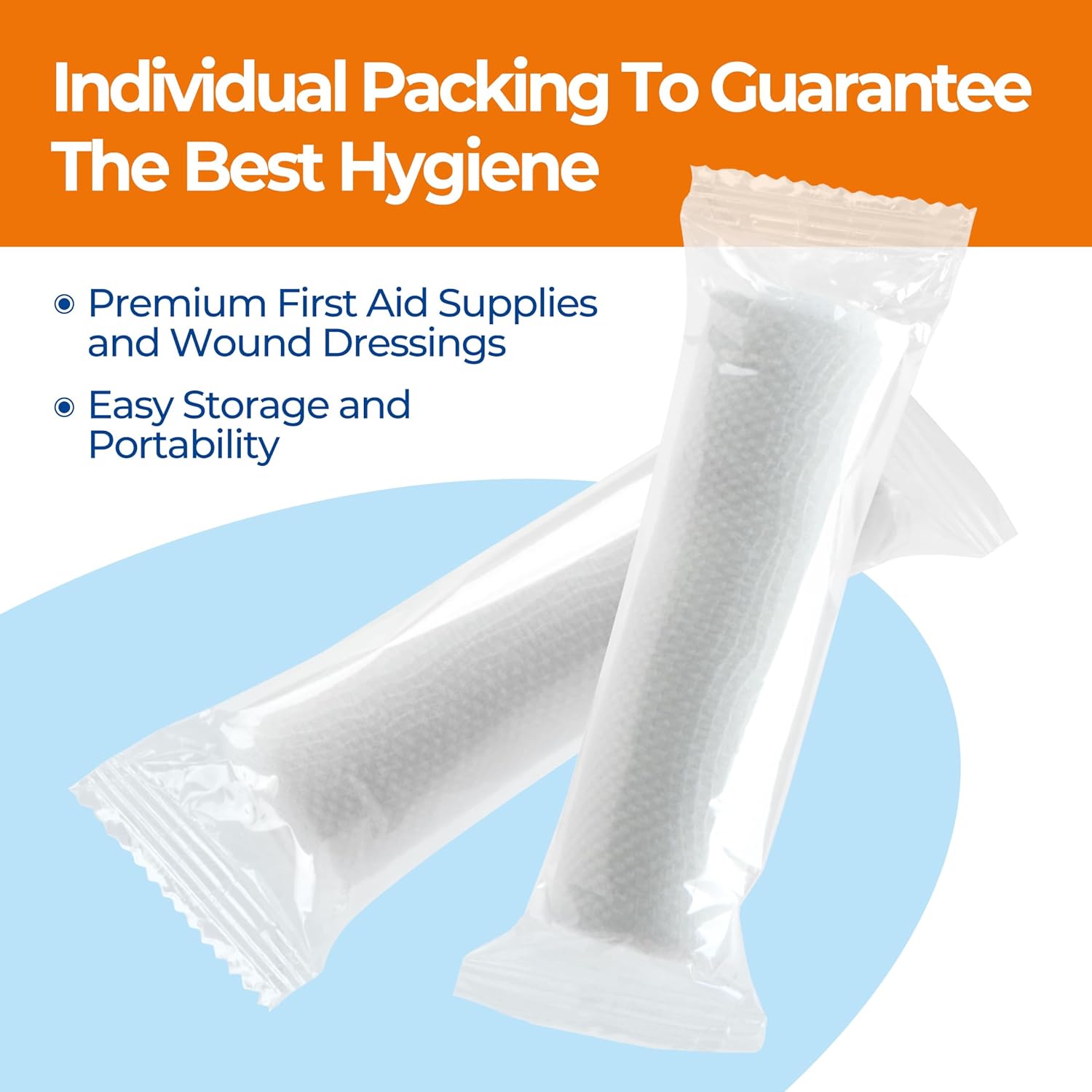 FIRST AID ESSENTIALS: Our 4 inch wide stretch gauze bandages are a must-have in first aid kits in hospitals, schools, gyms, homes, cars, and on the go, take a few rolls with you for emergencies, individually packaged for easy storage and portability
