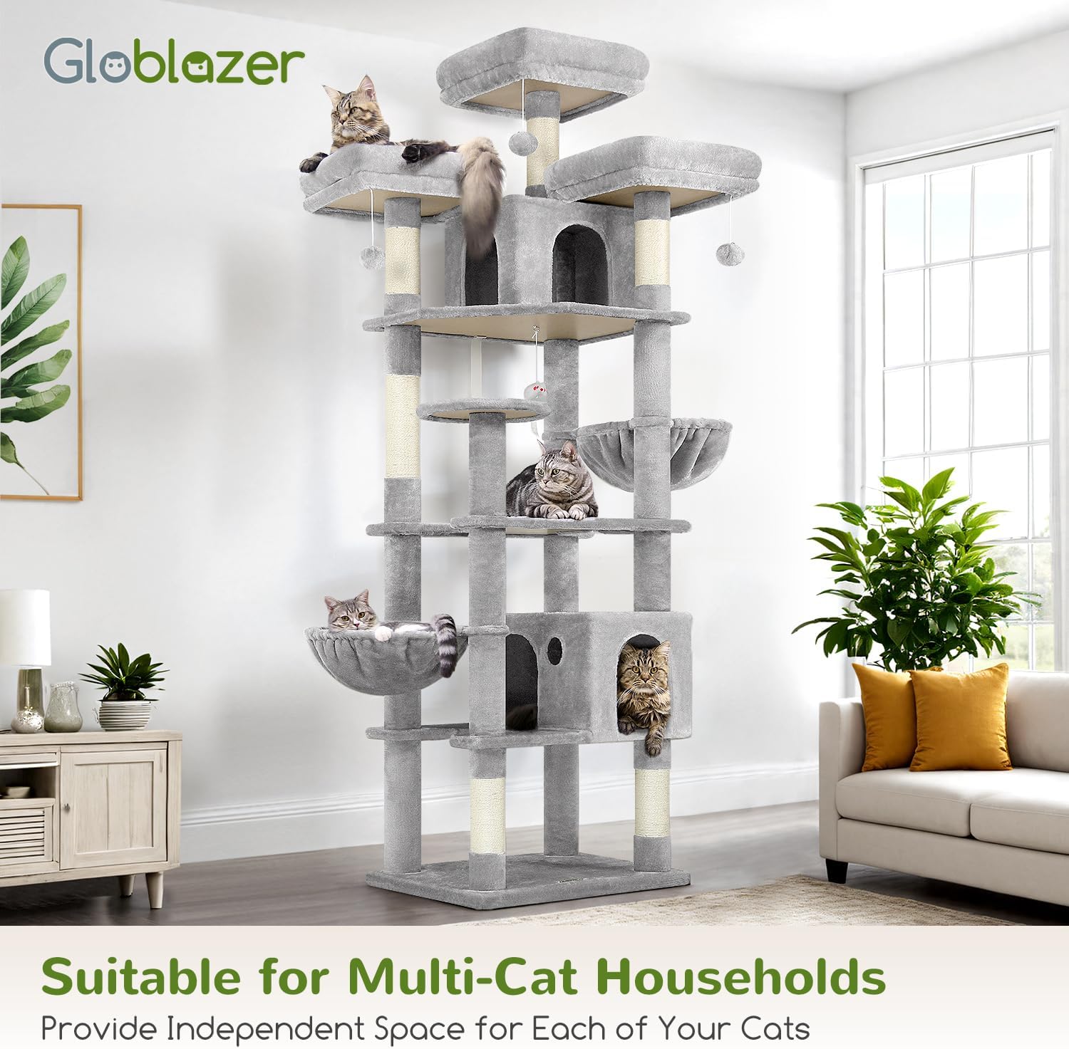 8 reviews for Globlazer Cat Trees and Towers for Multiple Adult Cats, 82-inch XXL Tall Cat Tree Tower for Indoor Cats with Scratching Post, 3 Perches, 2 Condos, 2 Hanging Baskets, F82, Light Grey