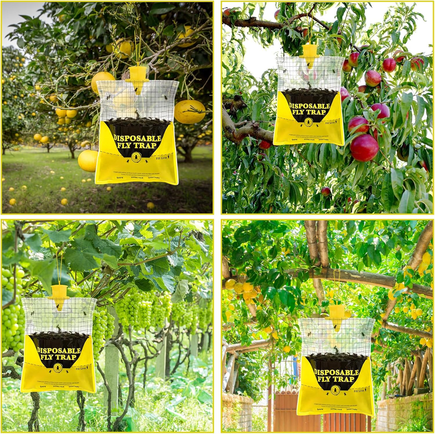 2 in 1 fly traps outdoor hanging: we know that flies prefer yellow, and natural 50g fly bait can attract flies faster. Therefore, the fly bags outdoor disposable of this visual and odor attraction is designed to help you seize more flies