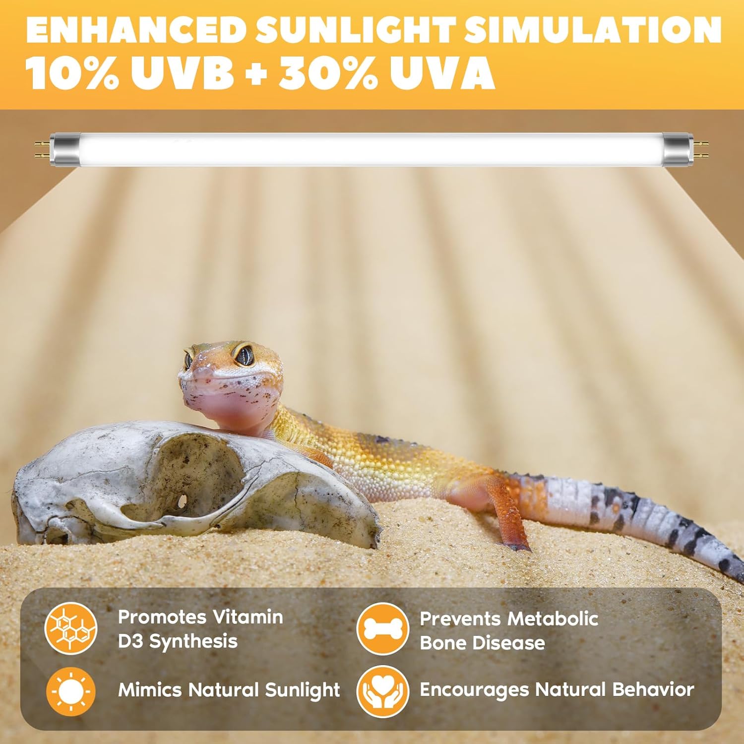 Versatile for Multiple Species – The T5 10.0 uvb bulbs for reptiles is ideal for desert-dwelling reptiles and amphibians, including bearded dragons, lizards, geckos, snakes, tortoises, chameleons, frogs, and turtles. It delivers the necessary UVB light conditions to support their growth and overall health.