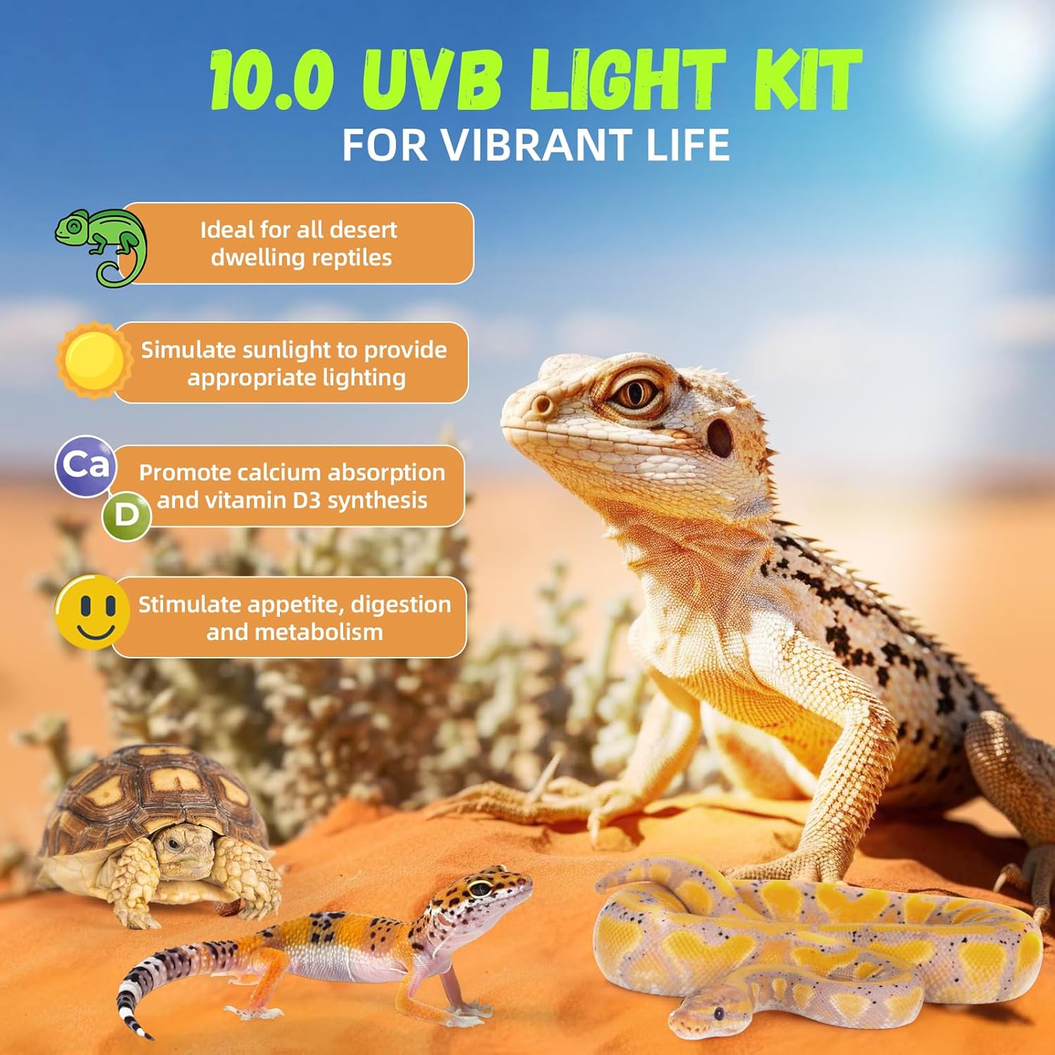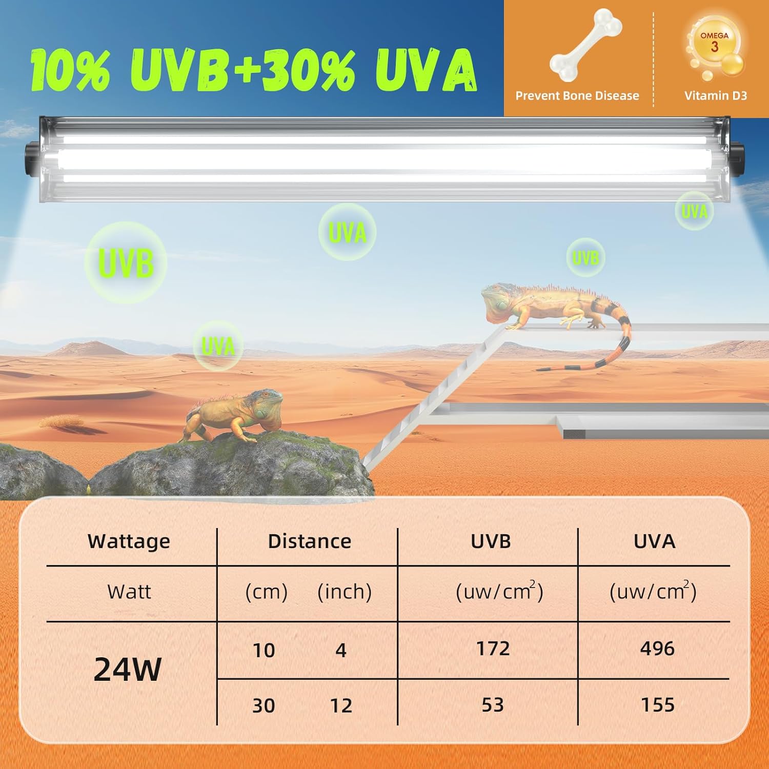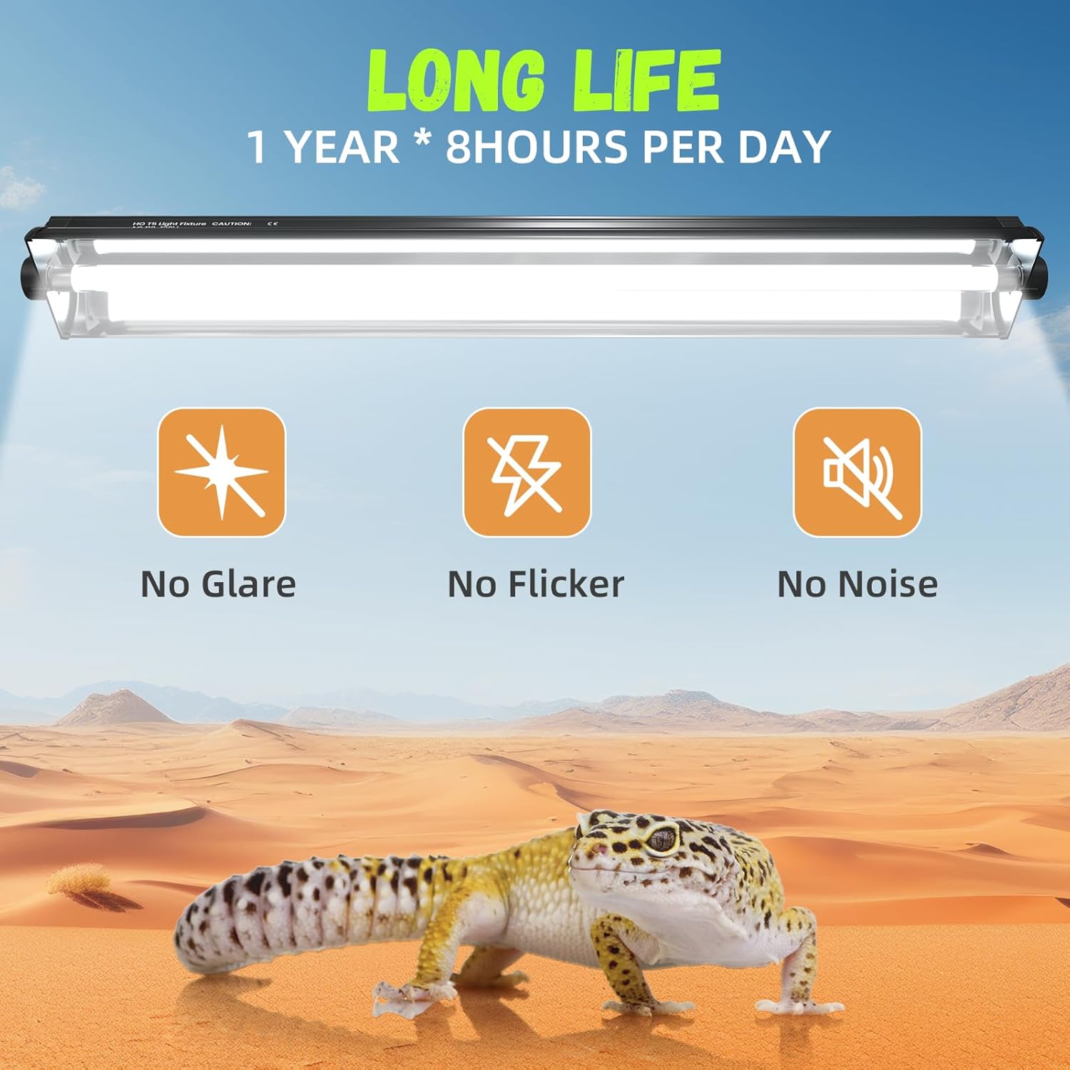 T5 UVB Lighting Combo Kit: This 24w T5 uvb reptile light delivers essential UVB rays for calcium metabolism in reptiles. Perfect for desert-dwelling species,such as lizards, bearded dragons, chameleons, geckos, turtles, snakes, iguanas, frogs.