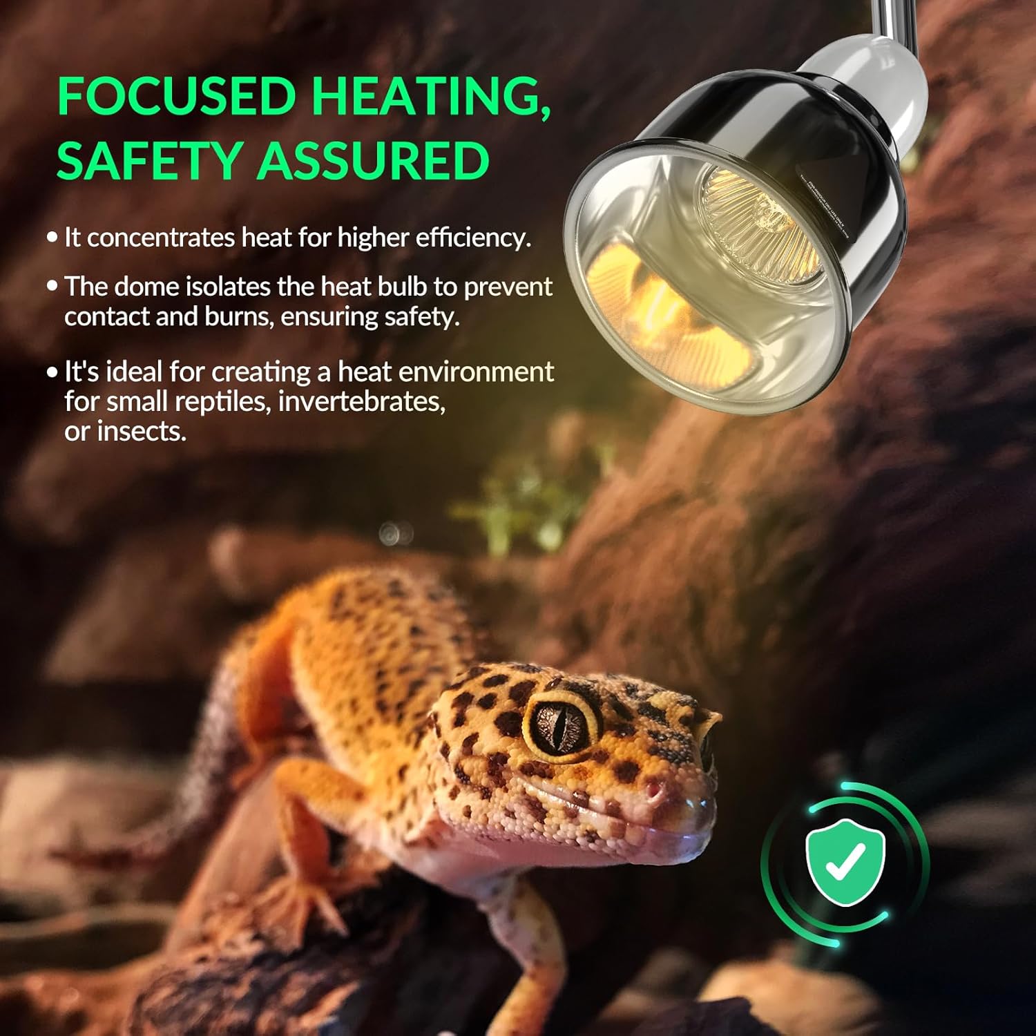 Precise & Safe Heating for Multiple Habitats:Versatile 3.5-inch dome creates the perfect basking spot as a reptile heat lamp, turtle heat lamp, or small aquarium heater. Ideal for lizards, turtles, and amphibians. The heat-sensitive safety sticker provides a visual warning for secure operation, making it a reliable heater for aquarium and terrarium use.