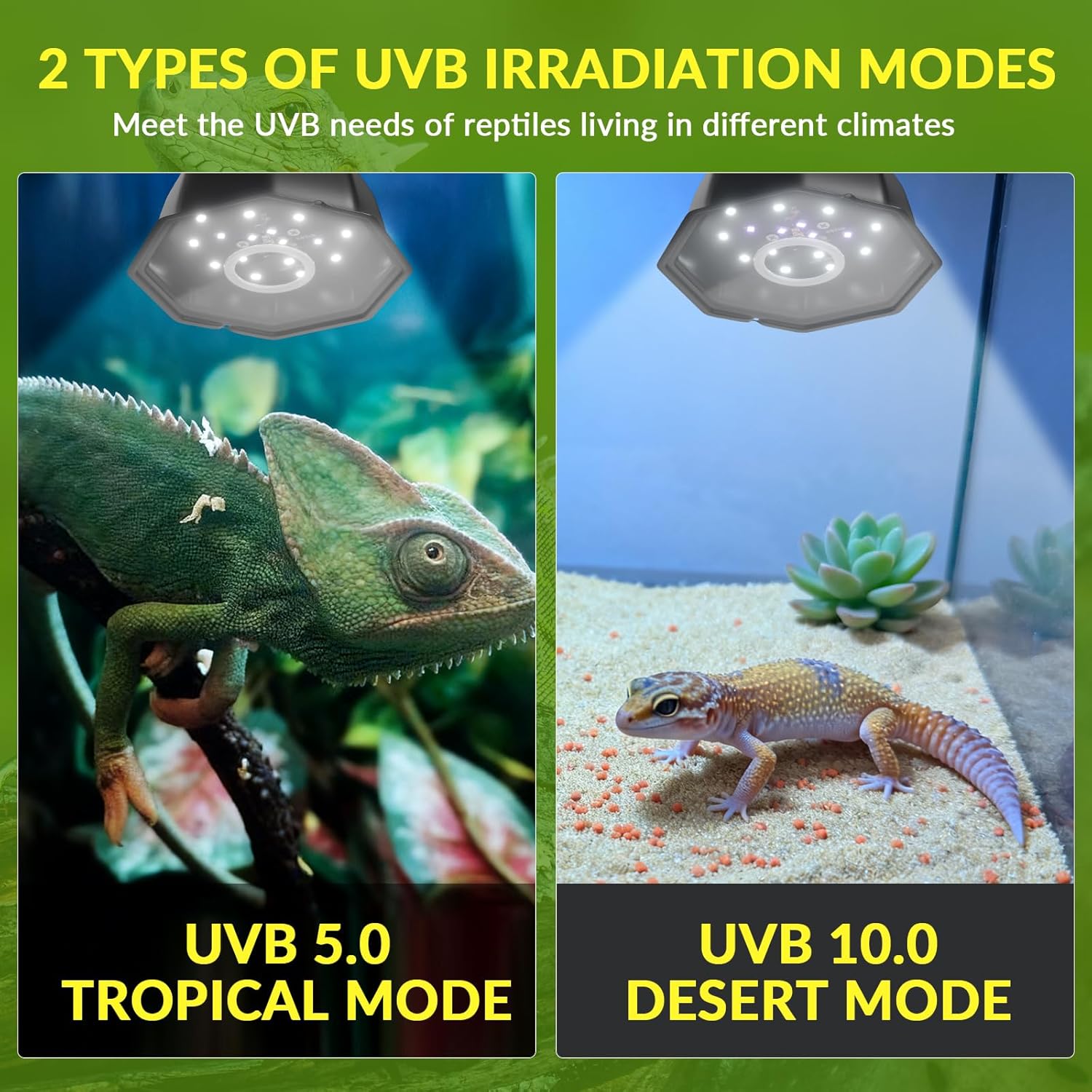 [Suitable for All Reptiles] – Our UVB Light for reptiles is available in two switchable modes – Tropical Mode (UVB5.0 for reptiles in tropical habitats); Desert Mode (UVB10.0 for reptiles in desert habitats)