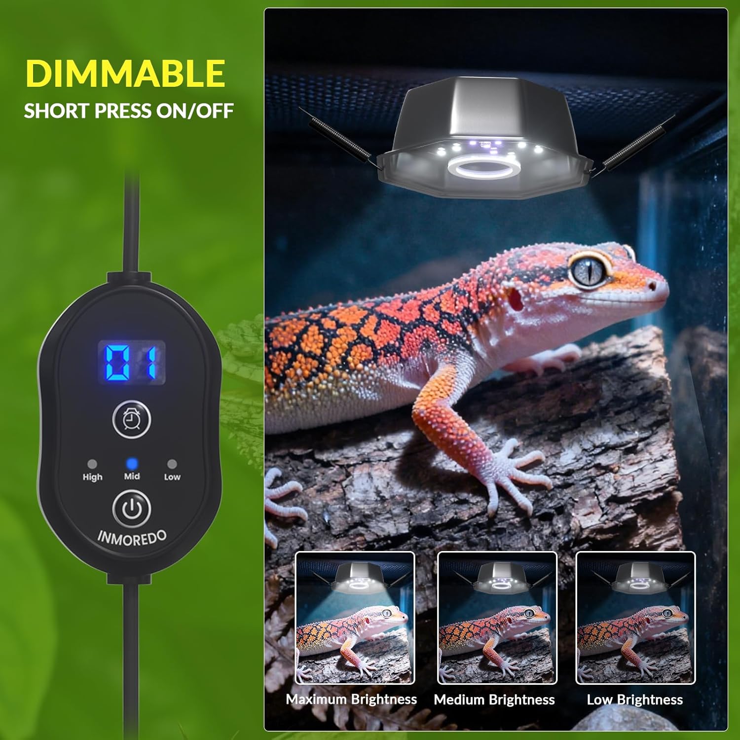 [Adjustable Brightness] – The LED UVB Reptile Light is dimmable, can be adjusted according to day, night, or sunset.Customize light intensity with a dimmable design, adapting to terrarium size and species-specific needs