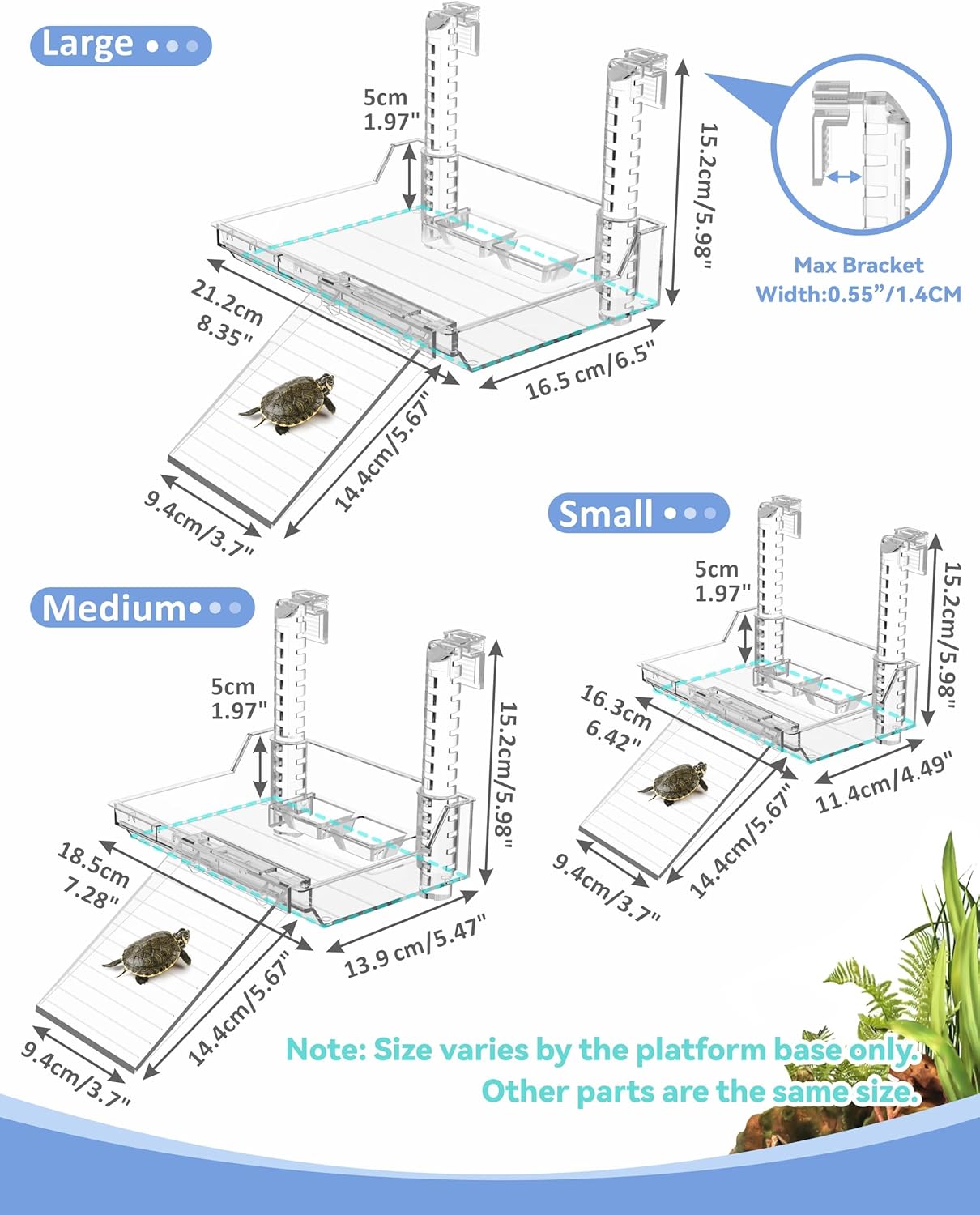 This turtle platform is exactly what I needed! The adjustable ramp and height make it easy for my turtles to climb, and the anti-slip surface keeps them safe. The feeding tray is a nice bonus, and the acrylic feels sturdy and durable. Highly recommend for any aquatic turtle setup!
