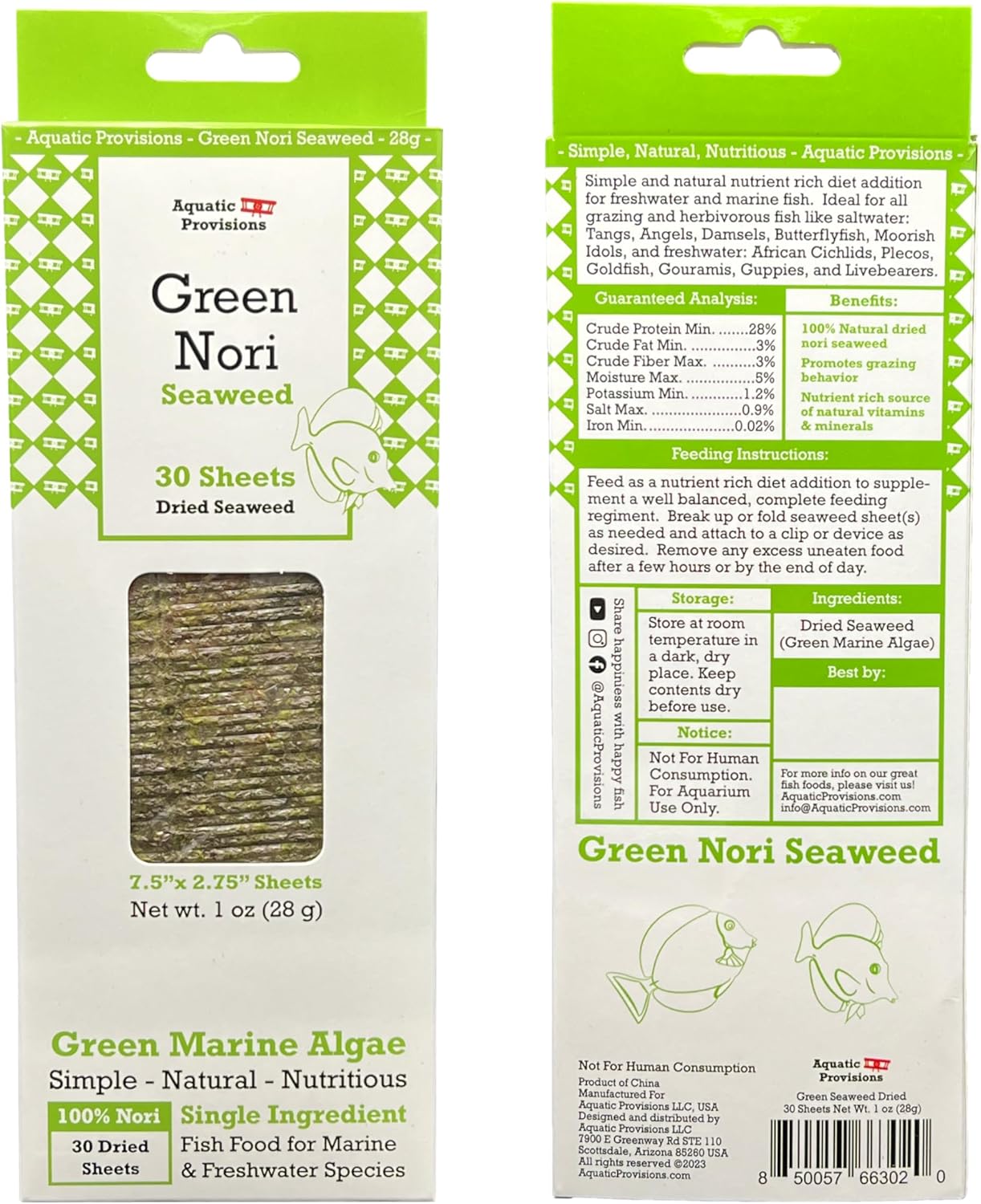 Green Seaweed, 30 Sheets, 1 oz, Dried Fish Food for Marine and Freshwater Aquarium Species