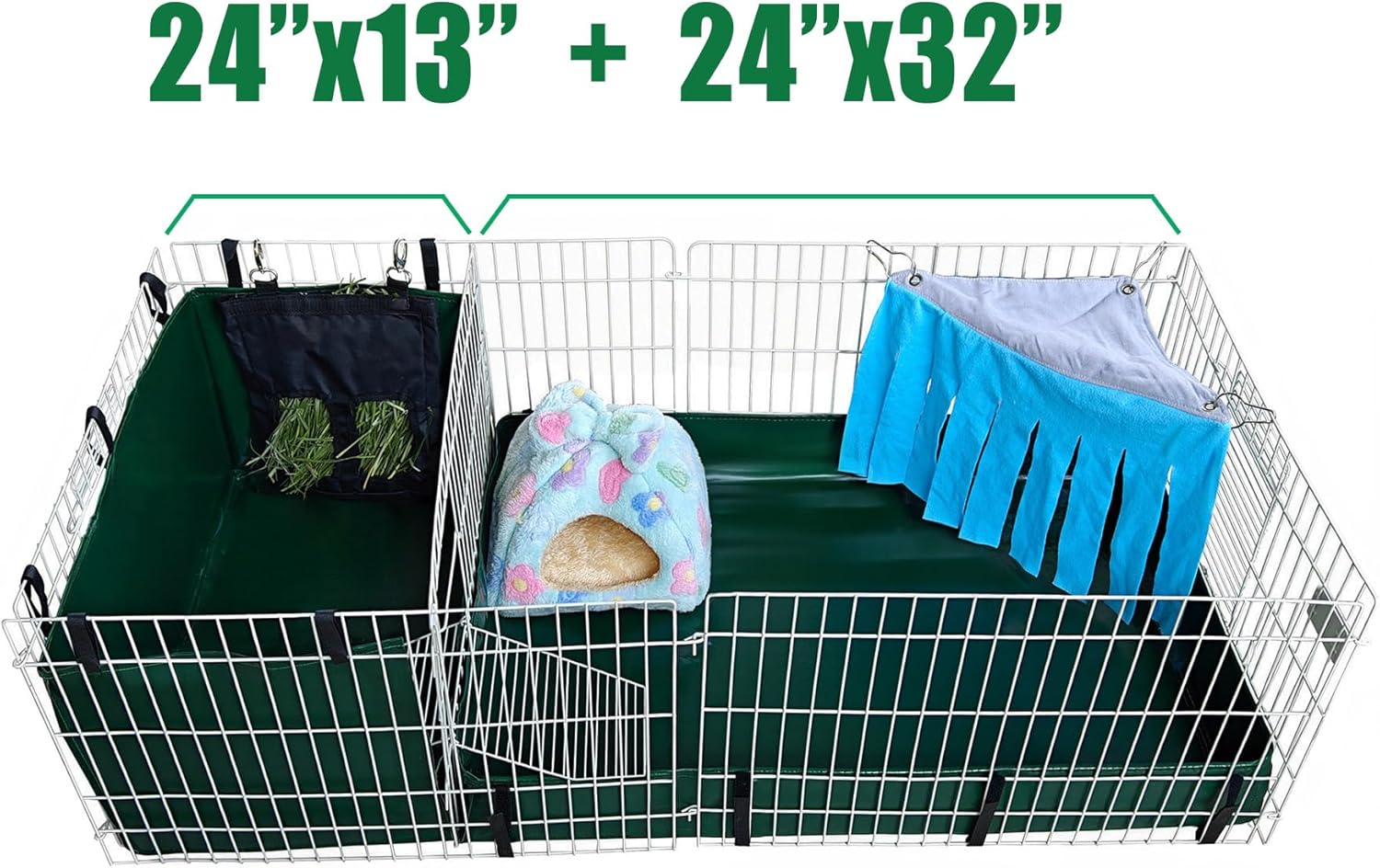 Guinea Pig Cage Liner, Litter Box & Hay Feedder for Guinea Pig Rabbits Hamsters Hedgehogs Ferrets and Other Small Animals. for Midwest Cage Kitchen 24″X13″, Green