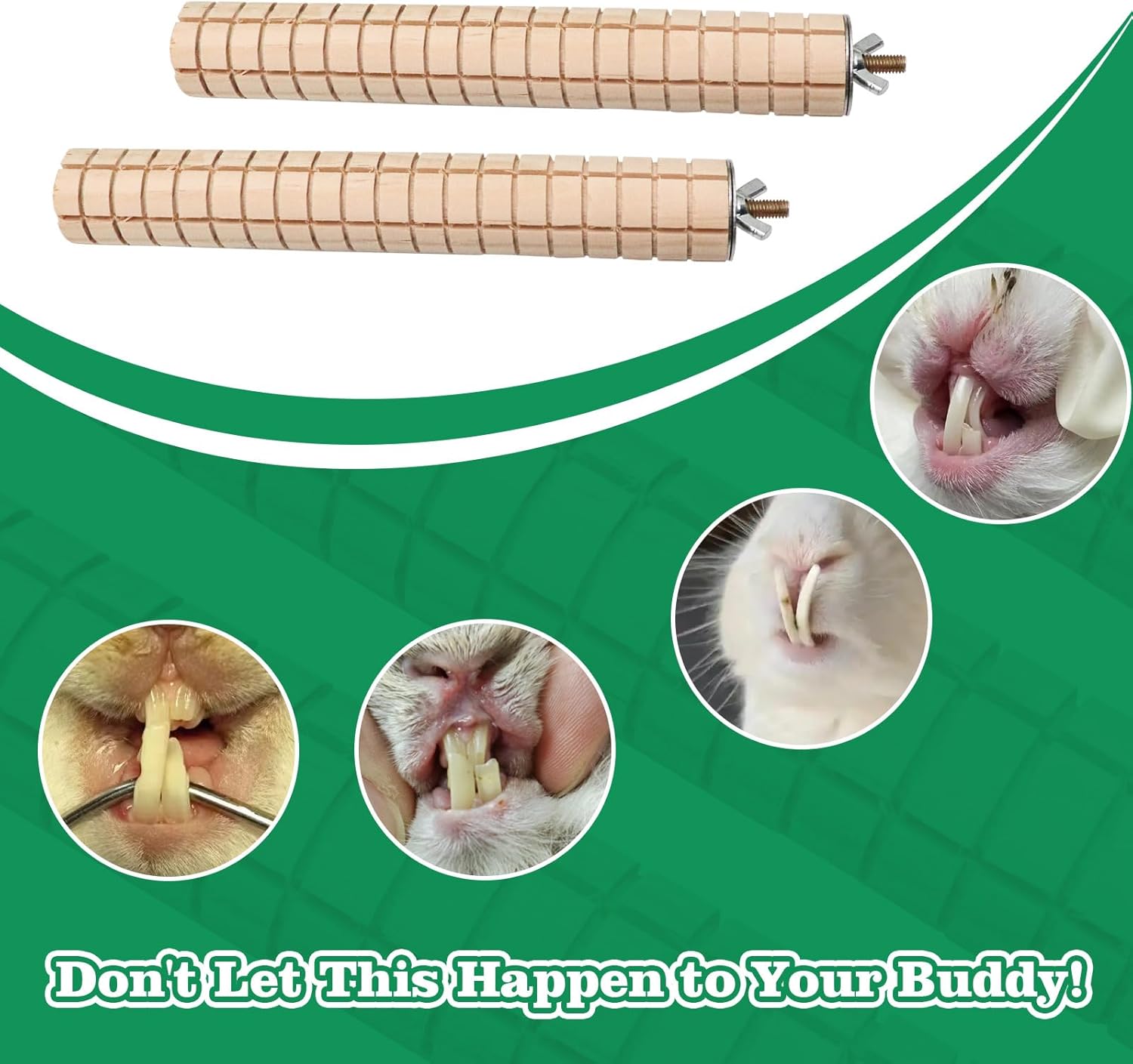 【2 Pack Set】: This set includes two identical wooden chew sticks designed for small animals. Each stick features a textured surface that resembles corn kernels, offering extra chewing fun.