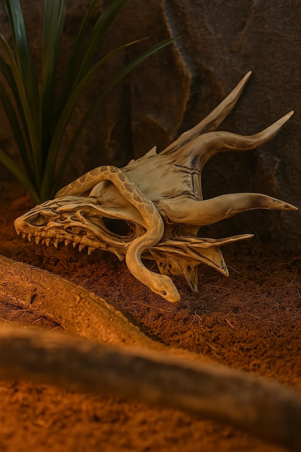 🦎 Resin Dragon Skull Design – Crafted with lifelike bone texture and gothic flair, this dragon skull adds a fierce prehistoric aesthetic to your terrarium or reptile tank.