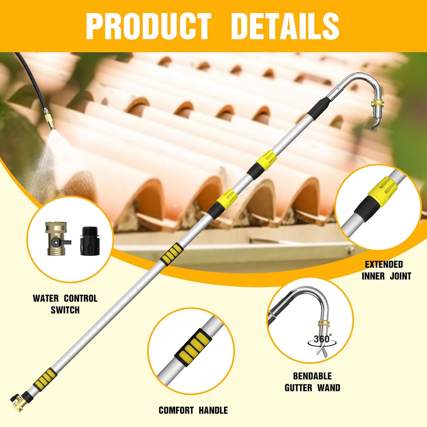 The 7FT Gutter Cleaning Tool with Bendable Wand & Quick-Connect Adapter makes it safer and easier to flush gutters from the ground. Itâs lightweight, works with standard hoses, and offers adjustable spray patterns with a shut-off valve. Overall, a handy maintenance tool that reduces ladder use.