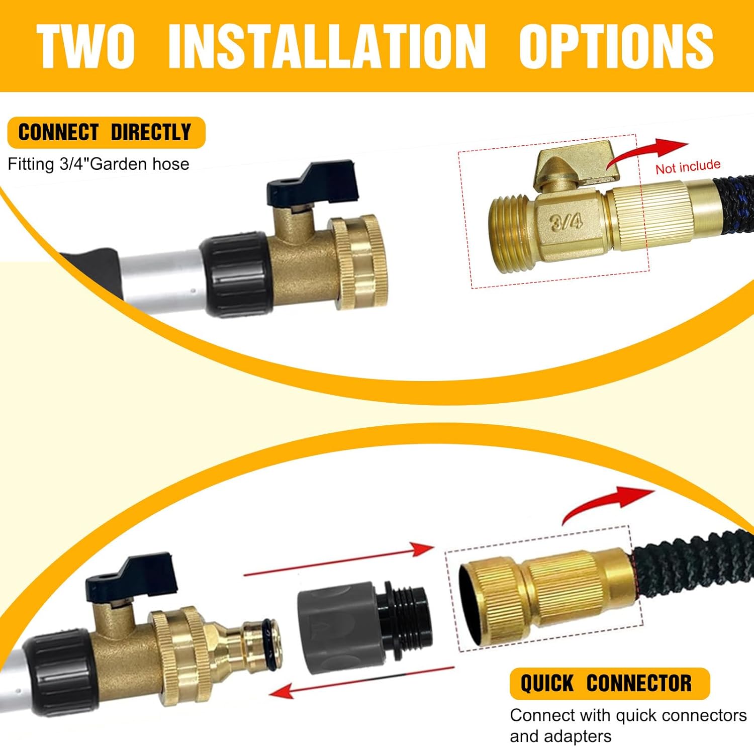 Universal Compatibility with Various Standard Tools and Hoses: Adopting a universal American thread design, the LAANPOLE gutter cleaning tool from ground fits most standard threaded tools and garden hoses, ensuring easy and quick installation. Cleaning tool for gutters also come with a 3/4-inch shut-off valve and rubber gaskets to prevent leaks while using the gutter cleaner tool