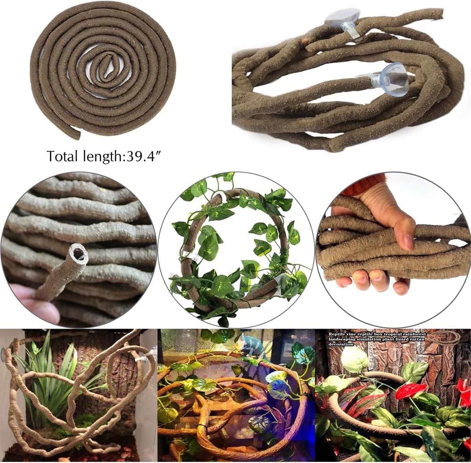 BENDABLE JUNGLE VINES : Artificial bendable rattan vine with natural feel and appearance; Reptile jungle vines are water proof, give your pet a better experience. The artificial leaves are PP laminated, with realistic appearance and not easy to discolor or fade; Reptile climbing vines provide a wonderful and comfortable habitat, simple designs and varied shapes of climbing vines for reptiles , artificial terrarium plants make your beardie feel at home