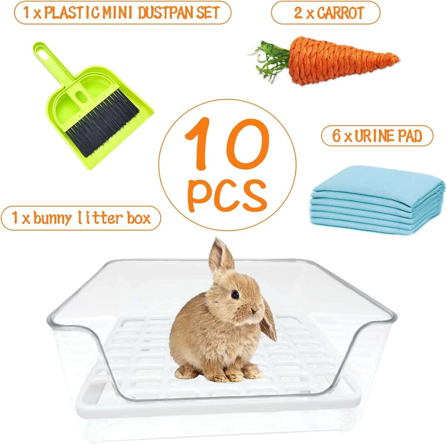 Good Quality Material: Good quality translucent bunny cage litter box is made of 100% premium-quality PE material, which is beautiful and easy to watch, strong and odorless, durable and sturdy, not easy to wear. Plastic mini dustpan set, which is prepared for cleaning the cages’ corner. With our litter box set, you could provide a clean living place for your small hairy pets