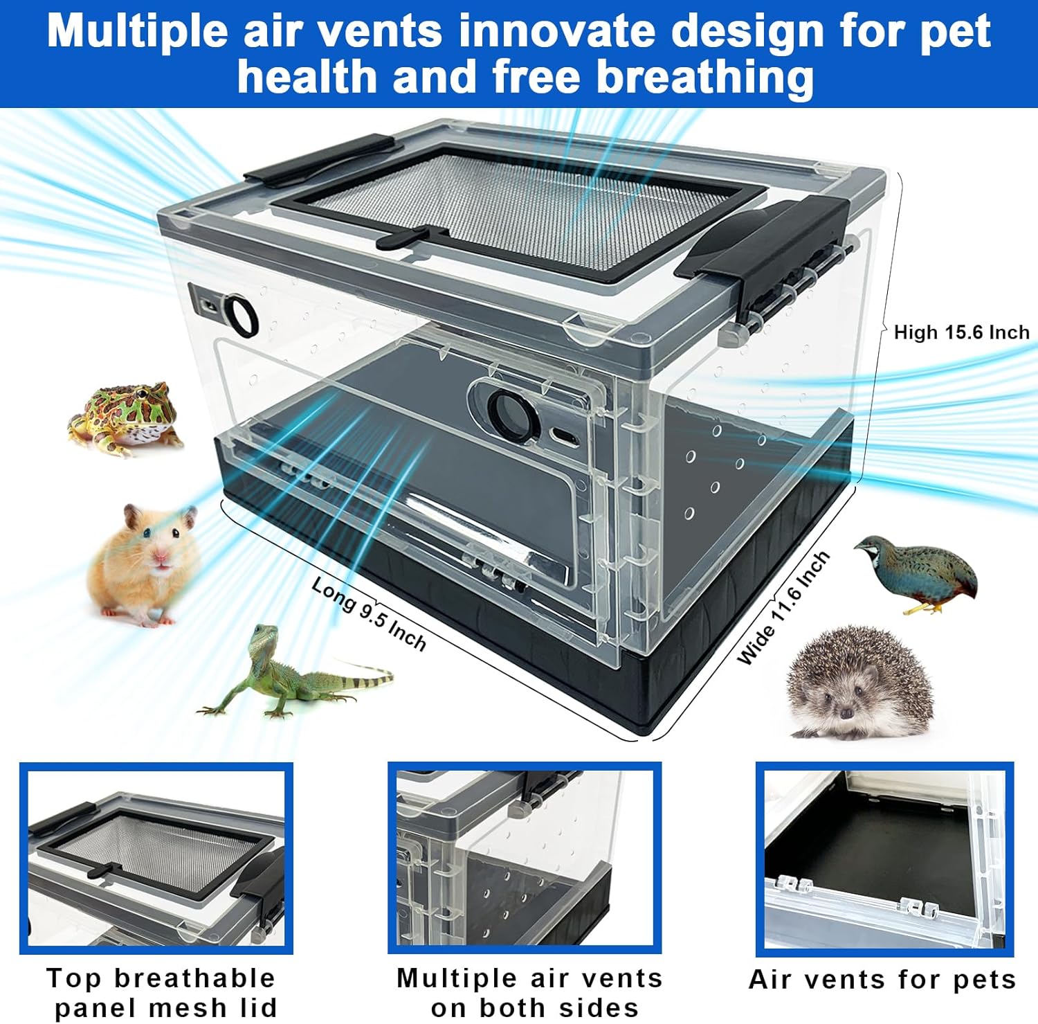 【Innovate design for pet health and free breathing】Our reptile and small animal cage for breeding house has top breathable panel mesh lid,multiple air vents on both side and air vents on bottom for better air circulation and flow which let the pet in product have free breathing