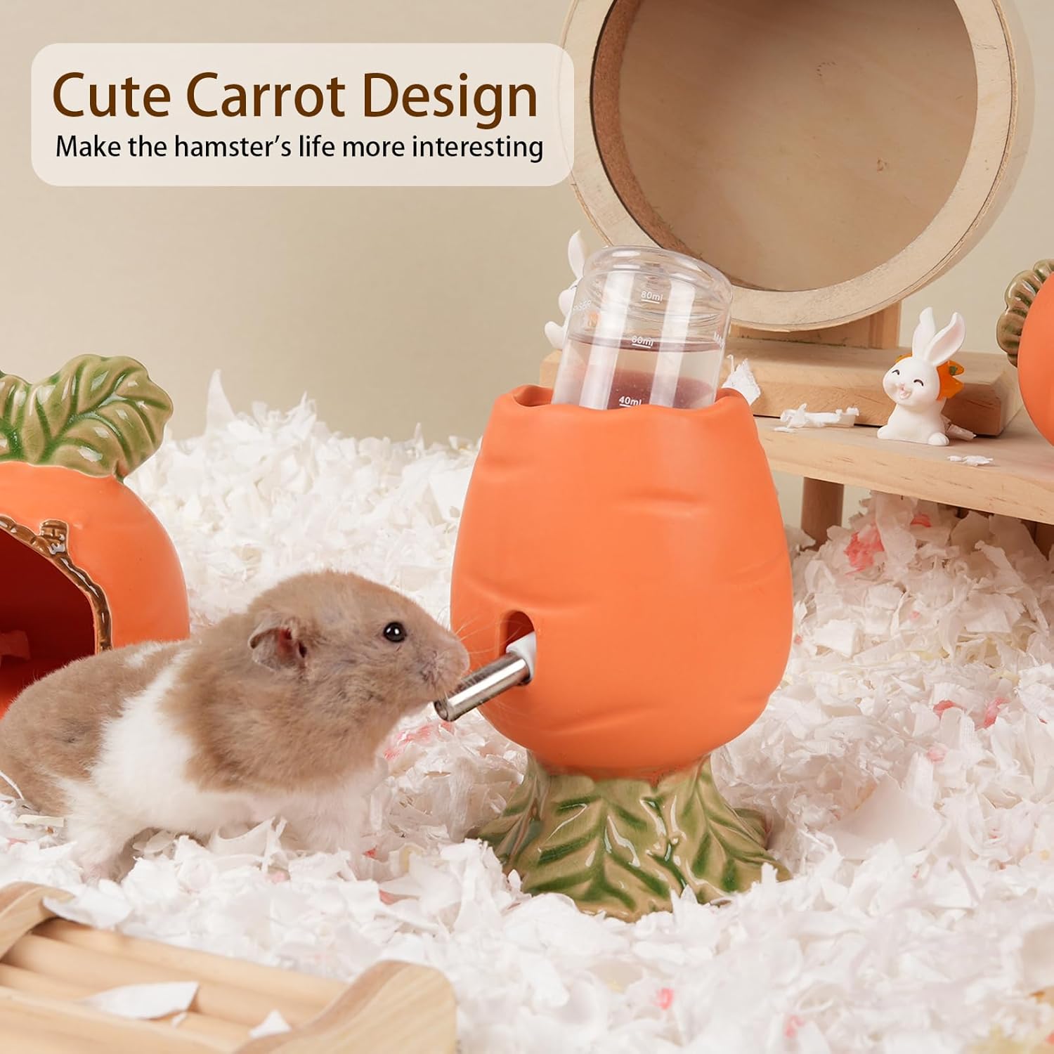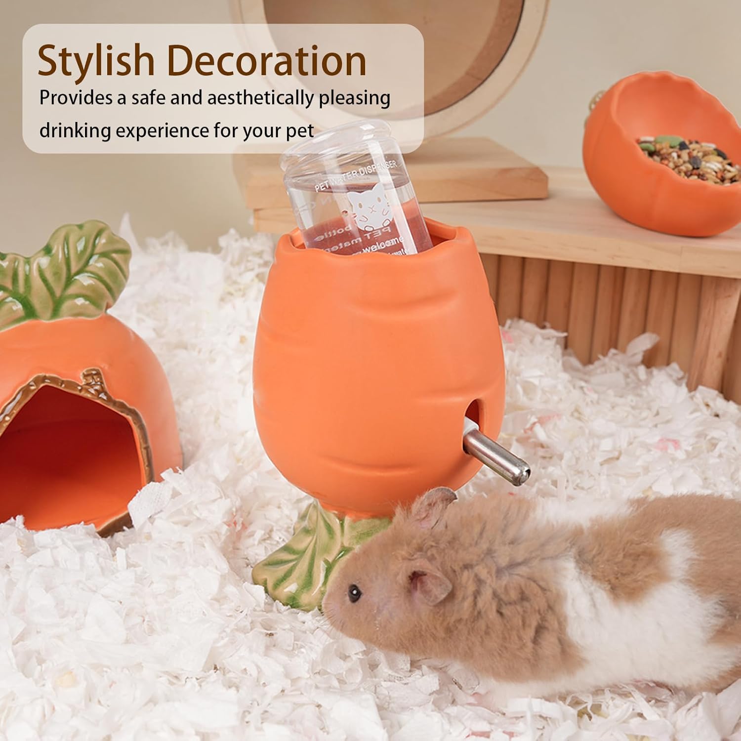 Carrot Design To Decor — The ceramic hamster water stand looks like a carrot, bringing interesting viewing effects to the hamster cage. Bright, lifelike carrot-shaped water bottle adds a playful, natural vibe to your hamster’s habitat. Perfect for themed cages or enriching your pet’s environment