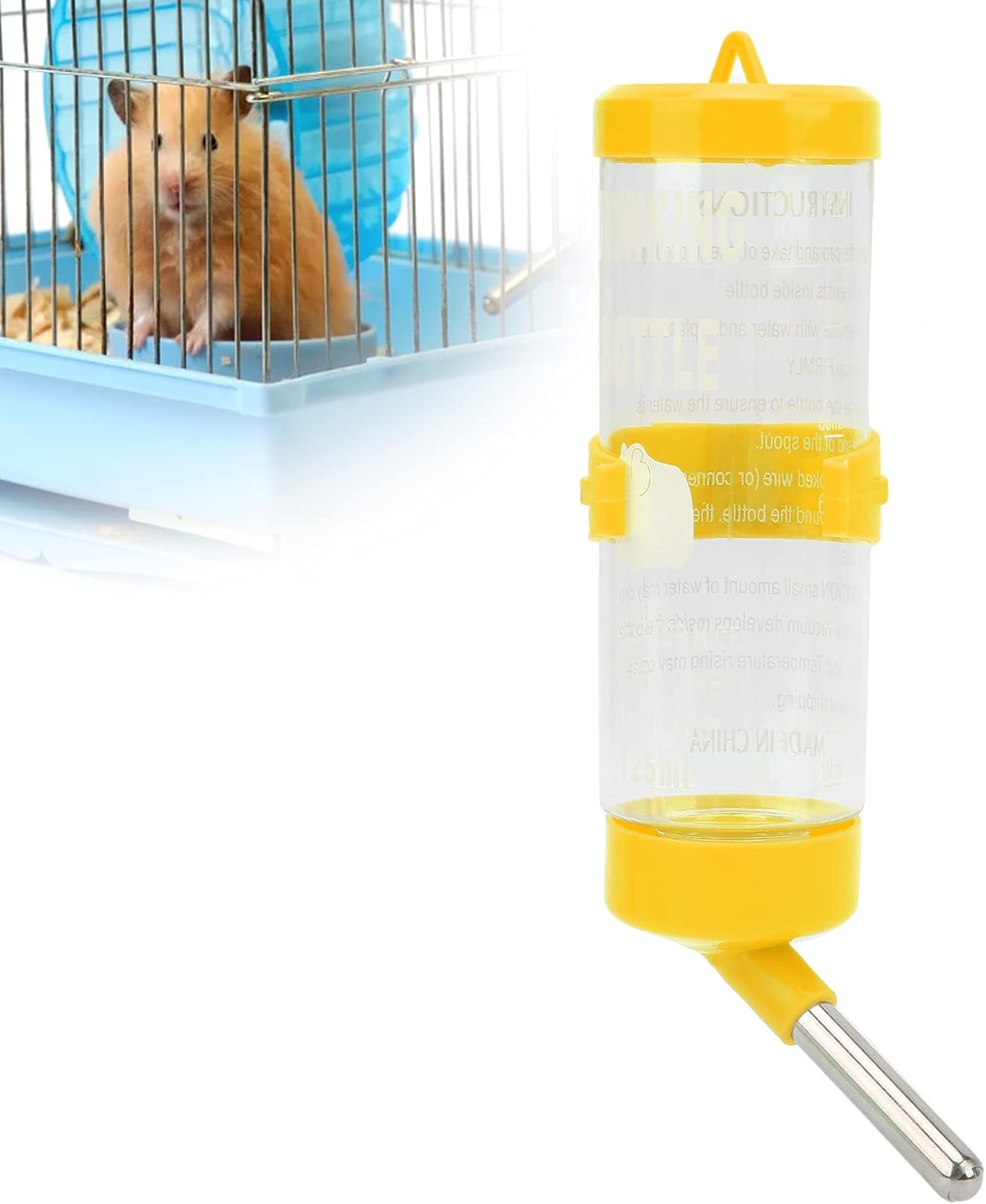 Hamsters Water Bottle Automatic No Drip Hanging Water Feeder Dispenser for Small Animals Guinea Pig Rat Rabbit Dwarf Gerbil Chinchilla(Yellow 125ML)