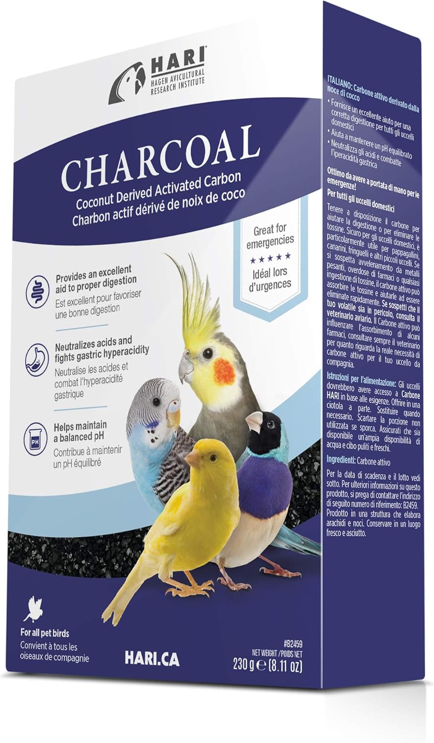 Hari Bird Charcoal, Coconut Derived Activated Charcoal, Aid in Digestion and Eliminate Toxins, Hagen Supplement for All Birds, 8.11 oz
