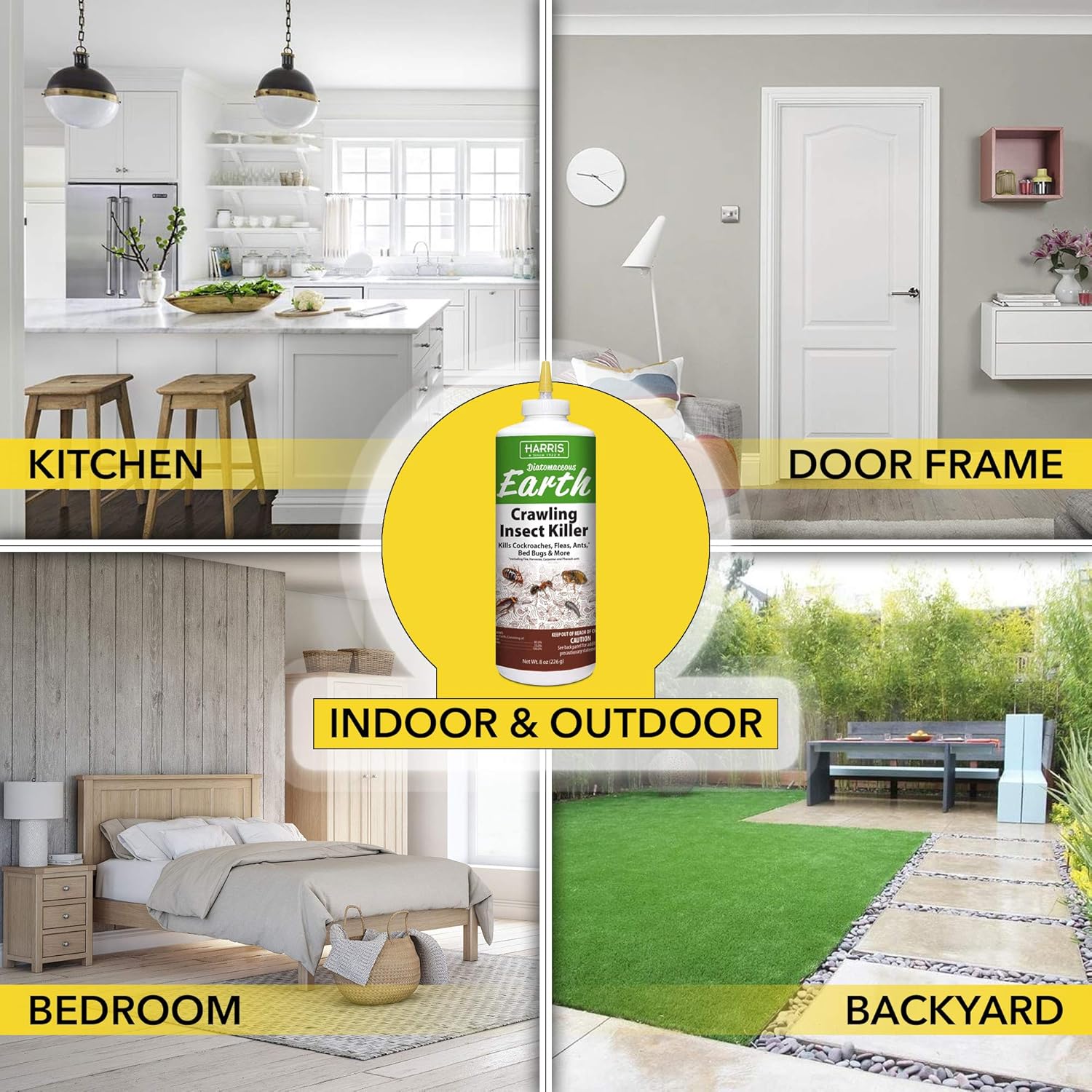 Harris Diatomaceous Earth Crawling Insect Killer kills cockroaches, fleas, ants, bed bugs, grasshoppers and more. This ready-to-use powder works indoors and outdoors.