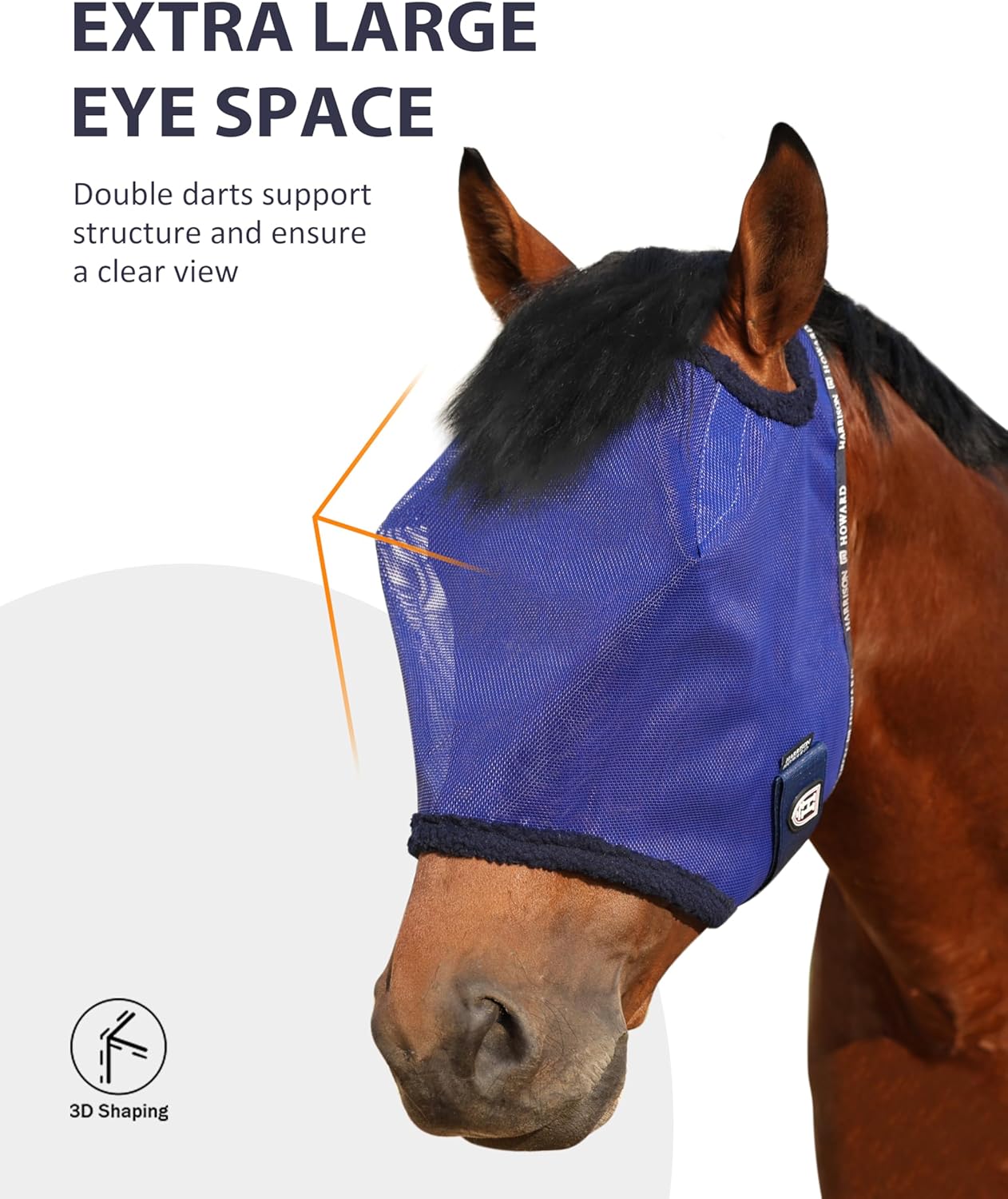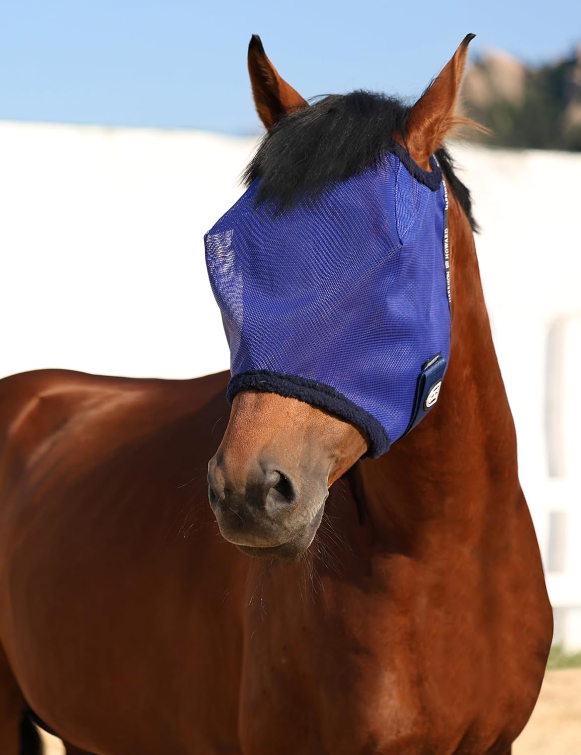 13 reviews for Harrison Howard All Round Mesh Horse Fly Mask UV Protective with Fleece Padded Edging Deep Navy M