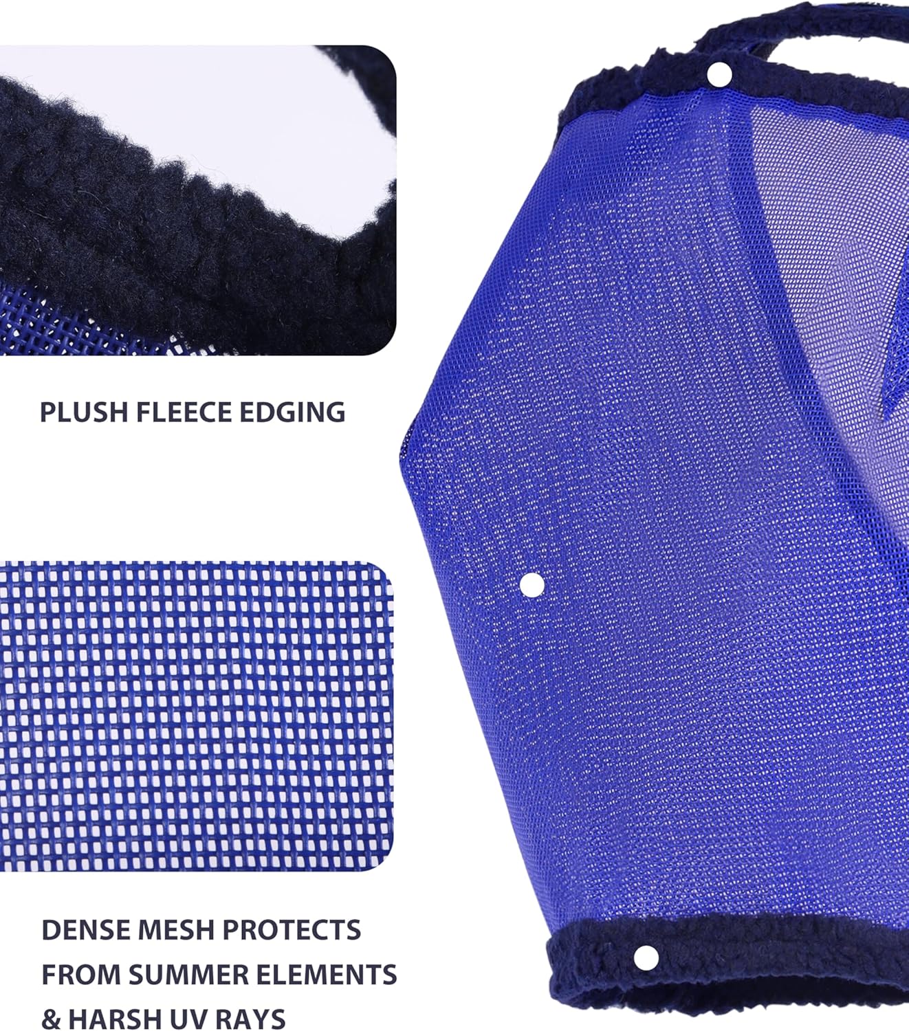 SOFT FLEECE TRIM: Softly padded edges to reduce pressure marks on the horse’s skin, making this fly mask super comfortable to wear. In the meantime, it keeps debris and flying particles from getting under the fly mask.