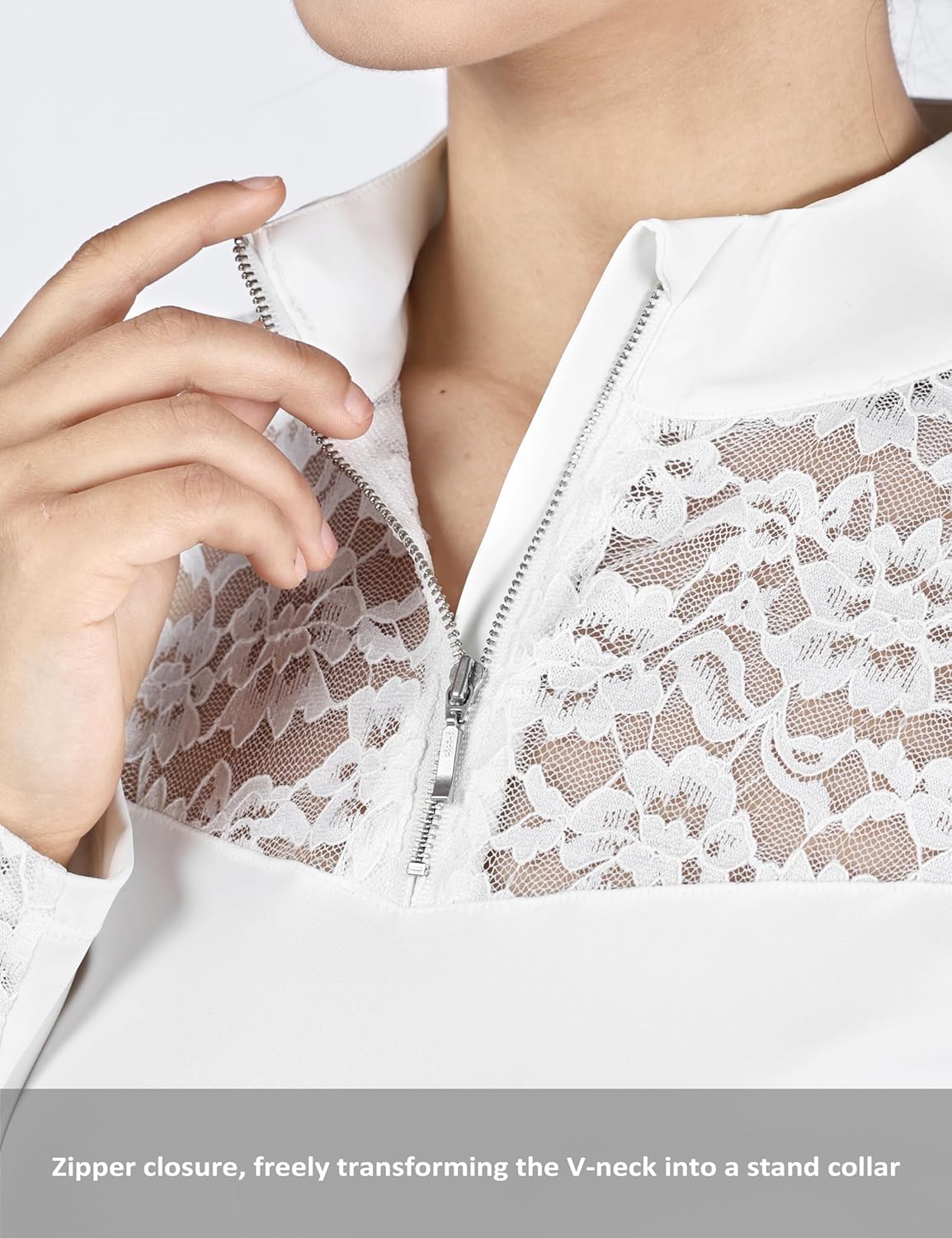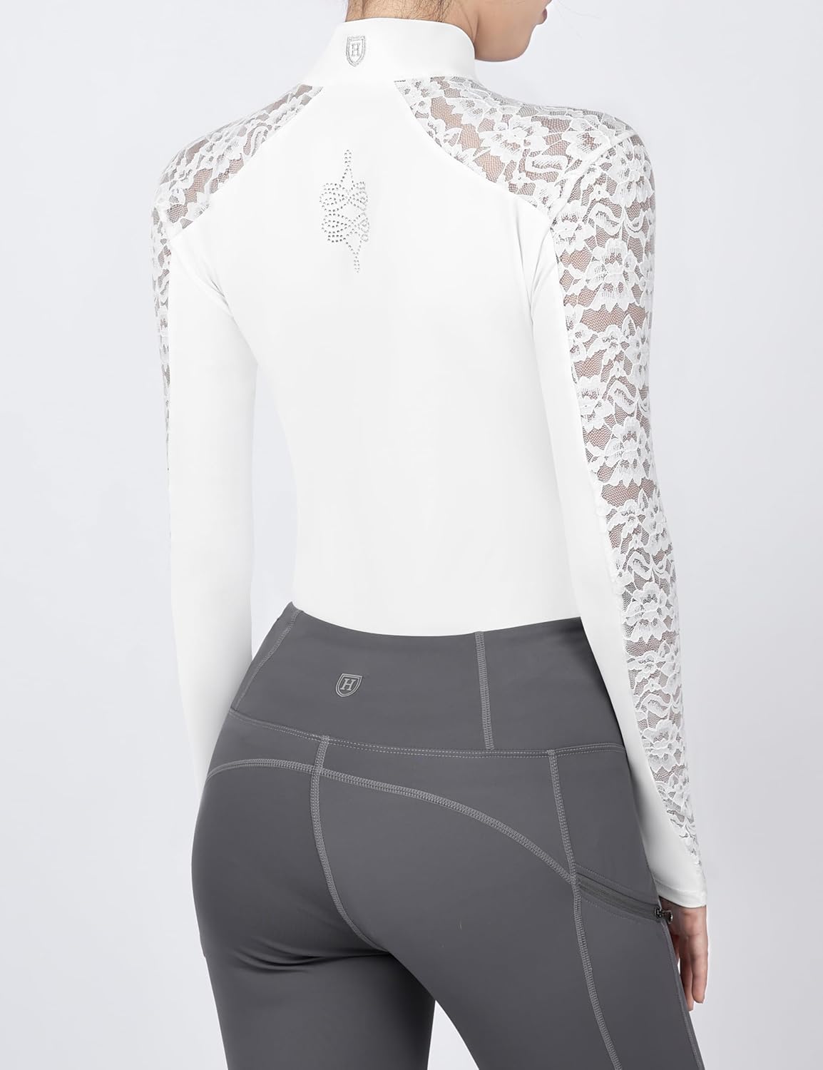 Harrison Howard Ladies Long Sleeve Lace Rider Top with Exquisite Lace Spliced Sleeves Slim Fit Show Shirt