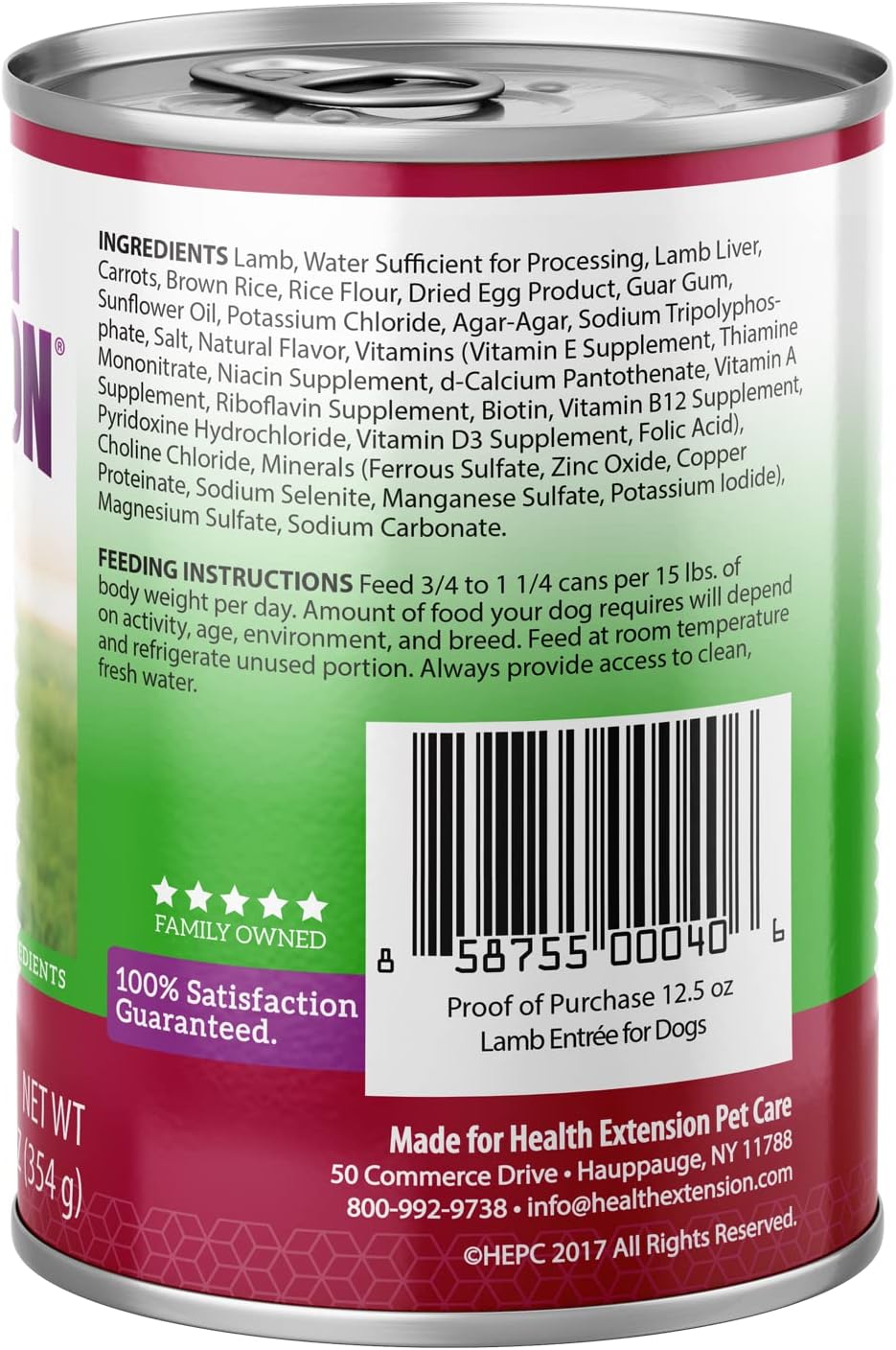 Health Extension Lamb Entrée Wet Dog Food, 12.5 oz – Protein-Rich Recipe, Hydration Support, Ideal for Sensitive Stomachs (Case of 12 Cans)