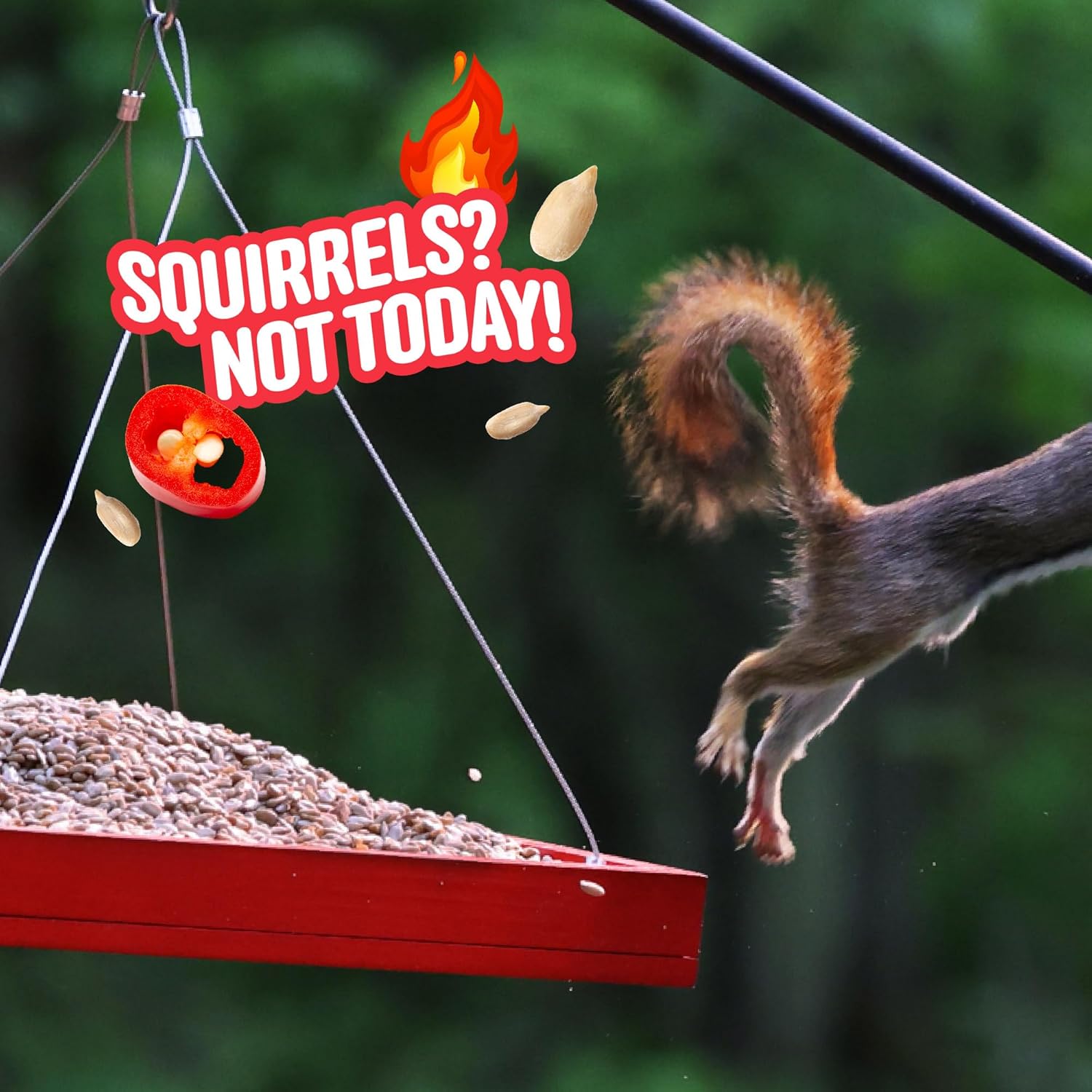 Hot Bird Seed = More Birds, Less Squirrels – Infused with chili pepper oil, this fiery hot bird seed keeps squirrels away while birds feast without a fuss