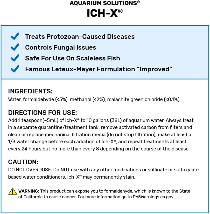 Ich-X utilizes the most widely respected formulation for the treatment of ich, using a less toxic form of malachite green, which makes it less taxing on biological action and safe for scaleless and sensitive fish like Corydoras.