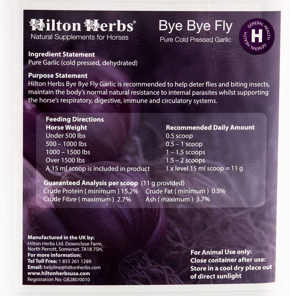 Hilton HerbsRich in bio-available Sulphur and B group vitaminsHelps support general health, balanced digestion, healthy respiration and strong immune functionPure food grade dehydrated garlic granulesAlso available in 2.2lb4.4lb18466-2 Horses:1 x 15 ml scoop per day added to the feed on a daily basis where possible splitting the required amount between feeds given.A 15ml scoop is included in the tub or bag and full instructions will be found on the packaging.Please allow at least a month for full benefits to be seen.Horses andamp; Ponies are individuals and often you may find a lower maintenance amount will be sufficient for long-term use.