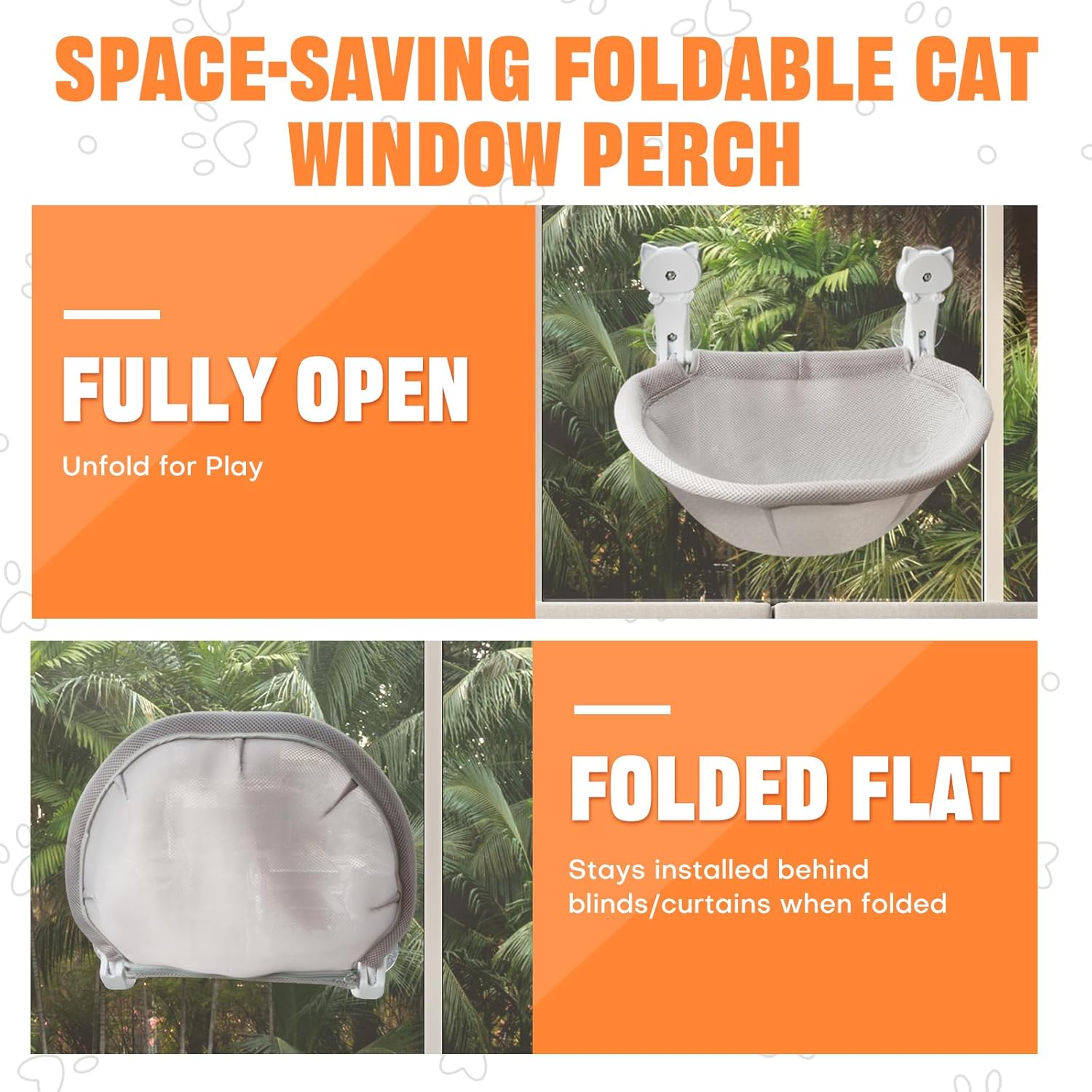 Space-Saving Foldable Design: Foldable cat window perch can against your window when not in use. when in use, transform it into a cat window hammock for large cats in seconds by simply unfolding the frame.This ultra-slim (just 2″ thick) window seat for cats inside is perfect for apartments and small spaces, making this the most practical cat shelf for window solution available