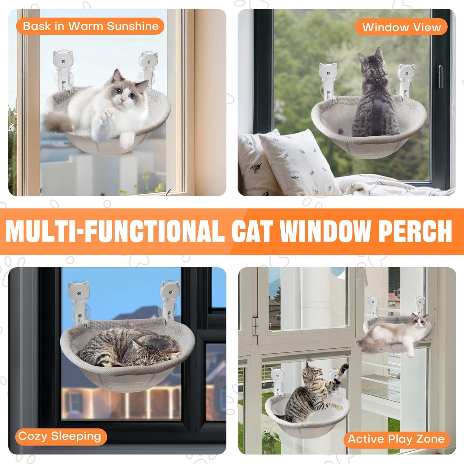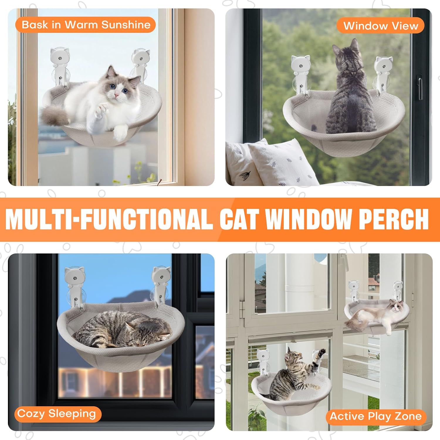 This cat window perch is perfect for giving my cat a cozy spot with a view. Itâs a good size at 18 x 12 inches, and the metal frame feels sturdy, so Iâm not worried about it falling. The fabric is breathable, which keeps my cat from getting too warm, and it folds up when I need the space. My cat took to it right away and curled up there, especially when the sun hits just right.I like how the suction cups hold really well, even with my cat jumping in and out. Itâs also nice that it doesnât have cords, so it looks cleaner and safer. Itâs become my catâs favorite place to nap and watch birds outside. If you have a curious or lazy cat, this is a great way to keep them happy without taking up floor space.
