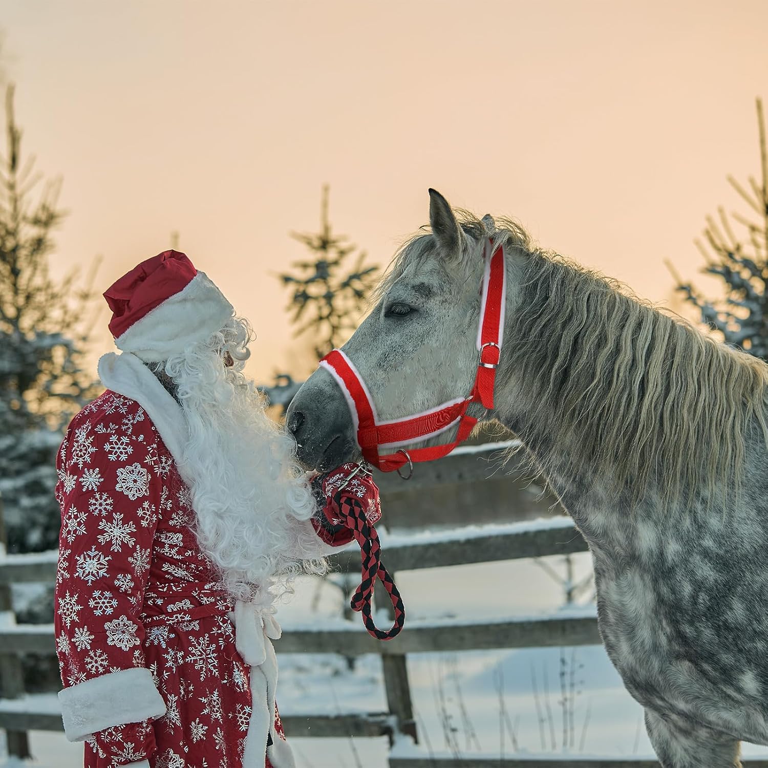 Horse Halter Christmas Horse Costume Red Bridle Rope with White Flannel Lined Prevents Rubs Adjustable Fit for Shows Xmas Parade