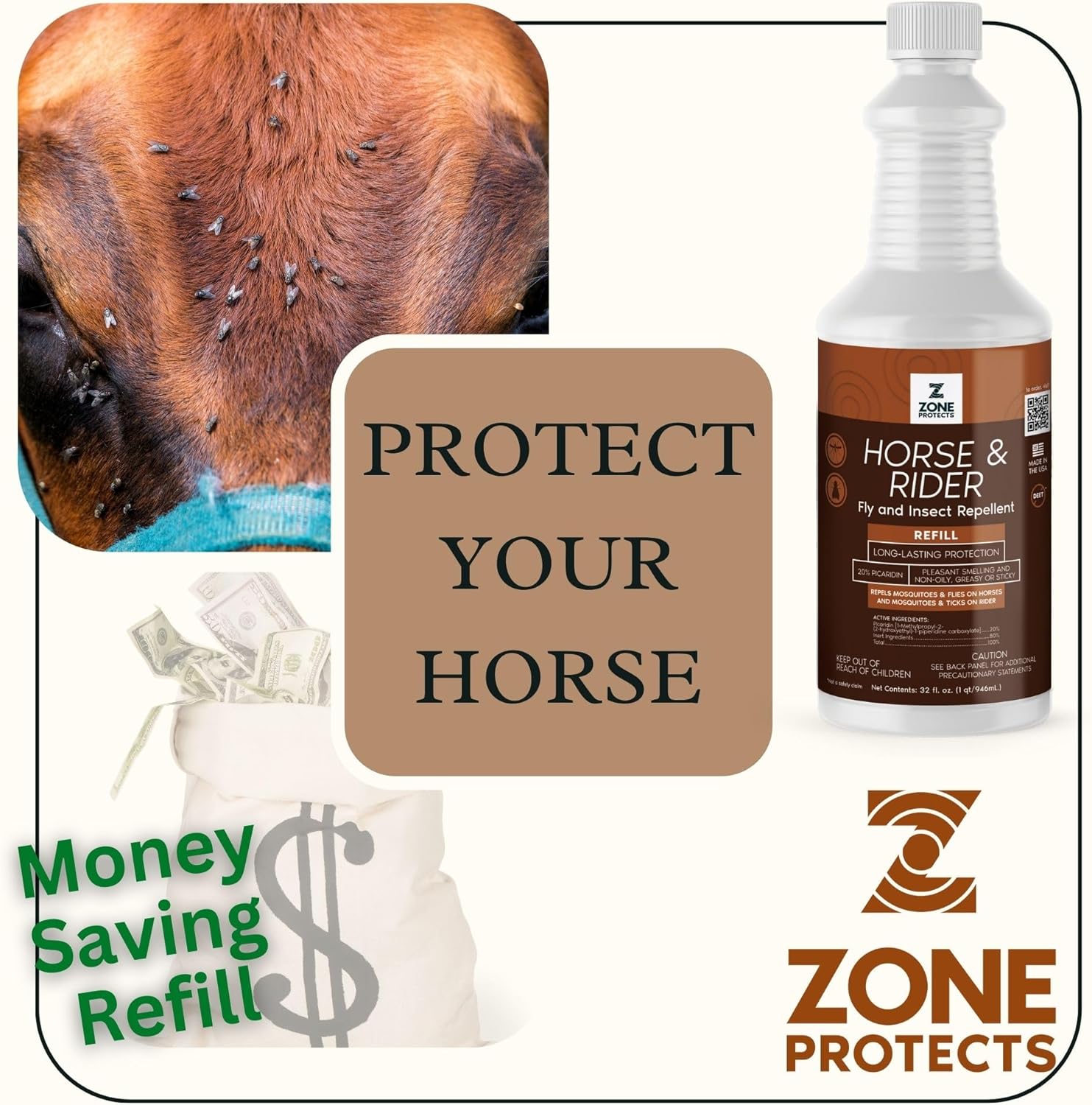 Zone Protects Horse & Rider Fly and Insect Repellent