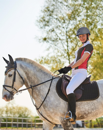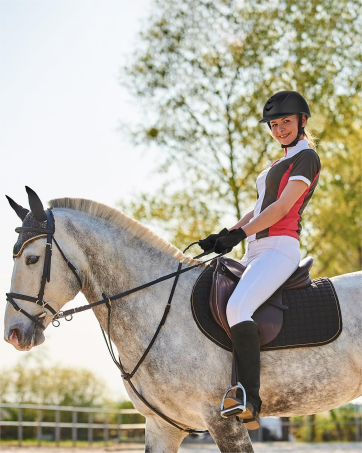 The helmet has a soft lining that provides air circulation and comfort, and is equipped with seven ventilation openings. The lining also provides cushioning effect and can be easily disassembled and cleaned after a day of horseback riding activities. Adjustable nylon straps and padded chin straps ensure a safe and tight fit.