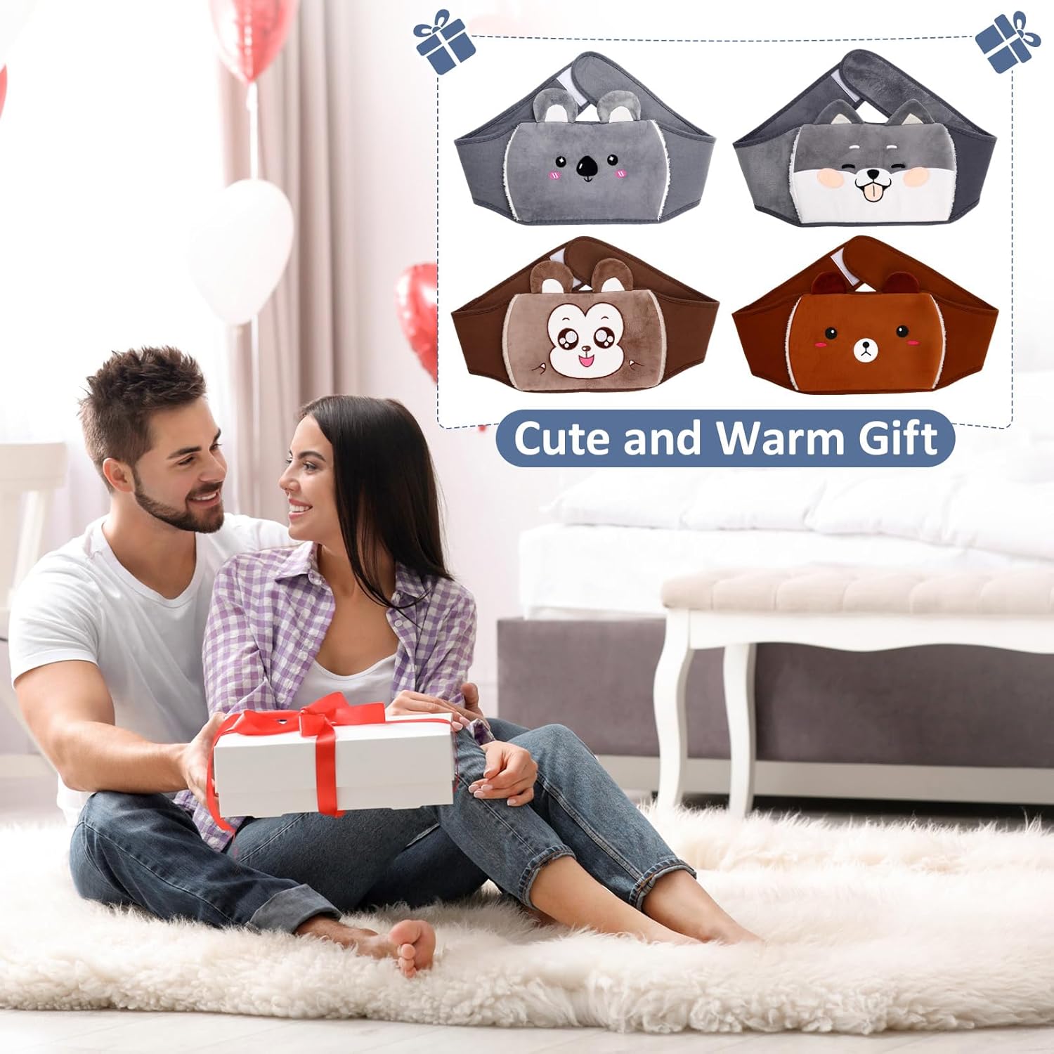 Hortsun 4 Pack Hot Water Bag Wearable 1l Cute Animal Hot Water PVC Bottle Pouch with Cover and 42 Inch Long Warm Waist Belt, Heating Pad for Waist Neck Shoulder Back Hand Arms and Period Pain Relief