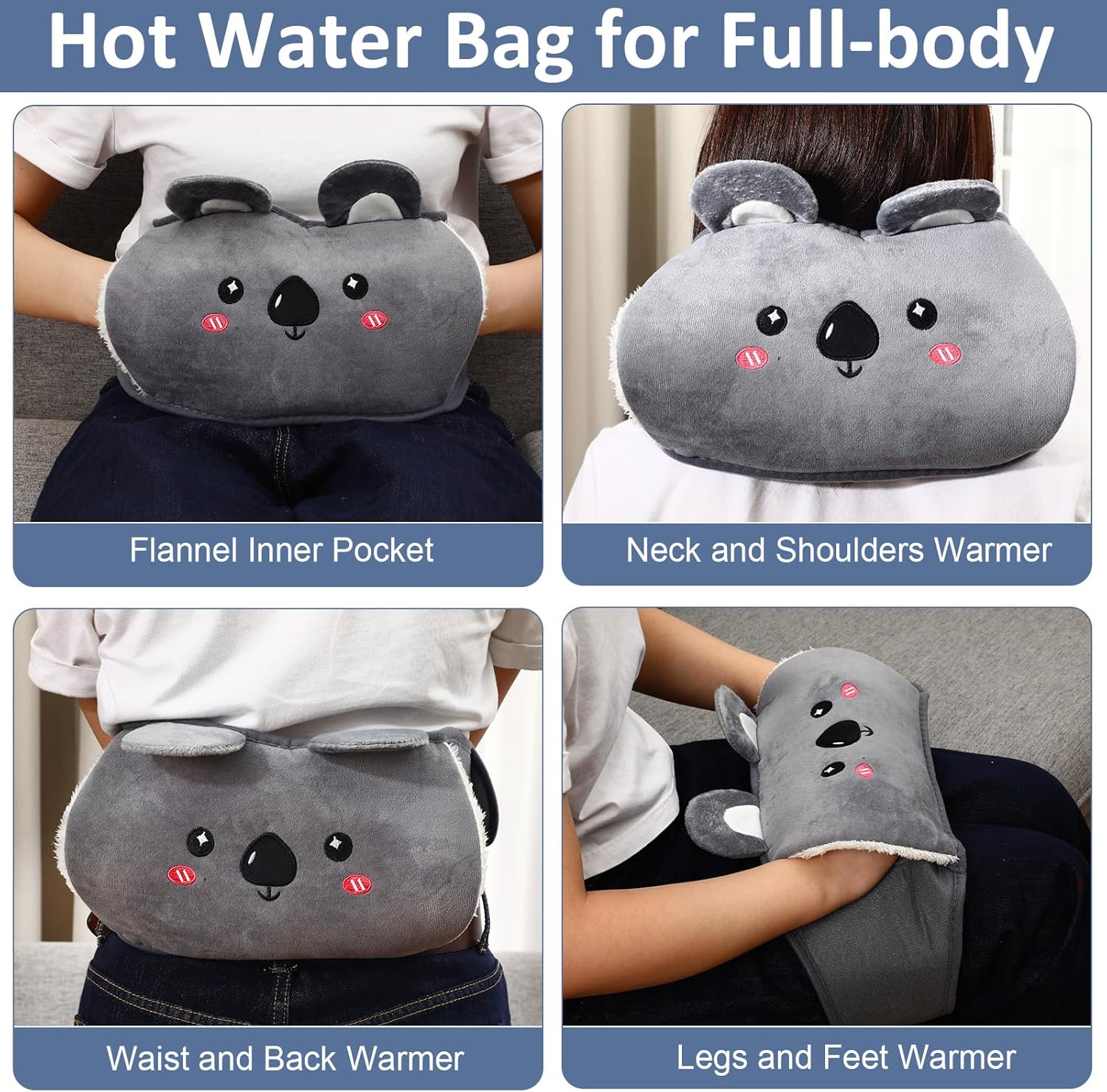Versatile Use: these adorable animal hot water bottles are perfect for home, office, or outdoor use; They are designed to relieve menstrual cramps by providing targeted warmth to the abdomen; Heat therapy is also effective for back pain, neck pain, arthritis, and sports injuries; Cold water or crushed ice can also be added for cold therapy