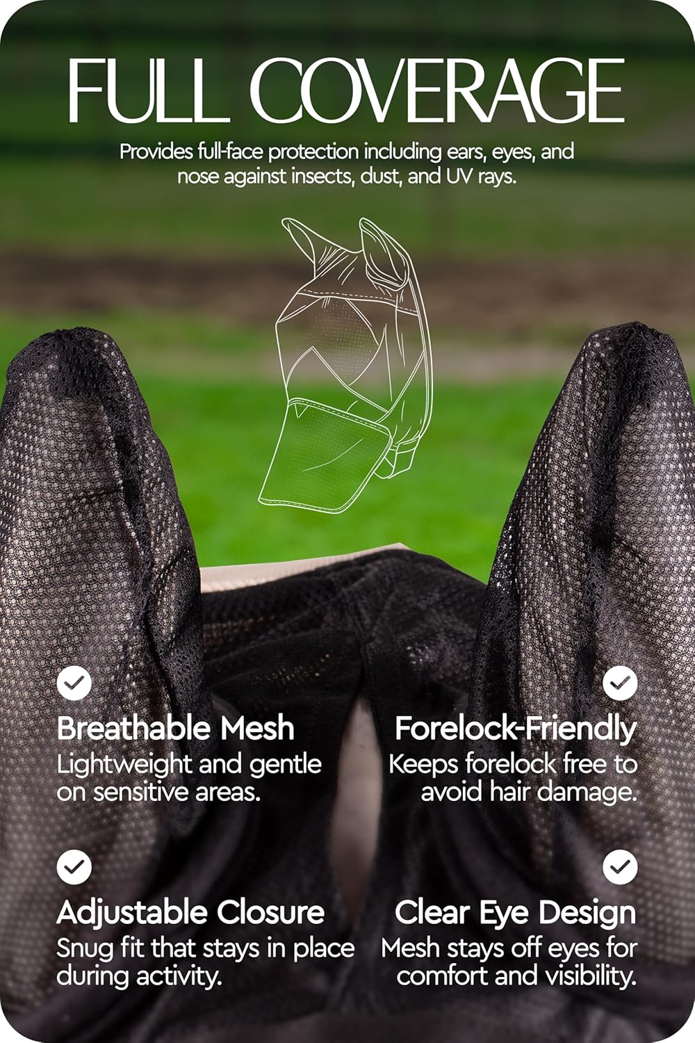 ✅ UV Protection: Blocks off 70% of the sun’s UV rays and protects your horse’s eyes from sun damage.