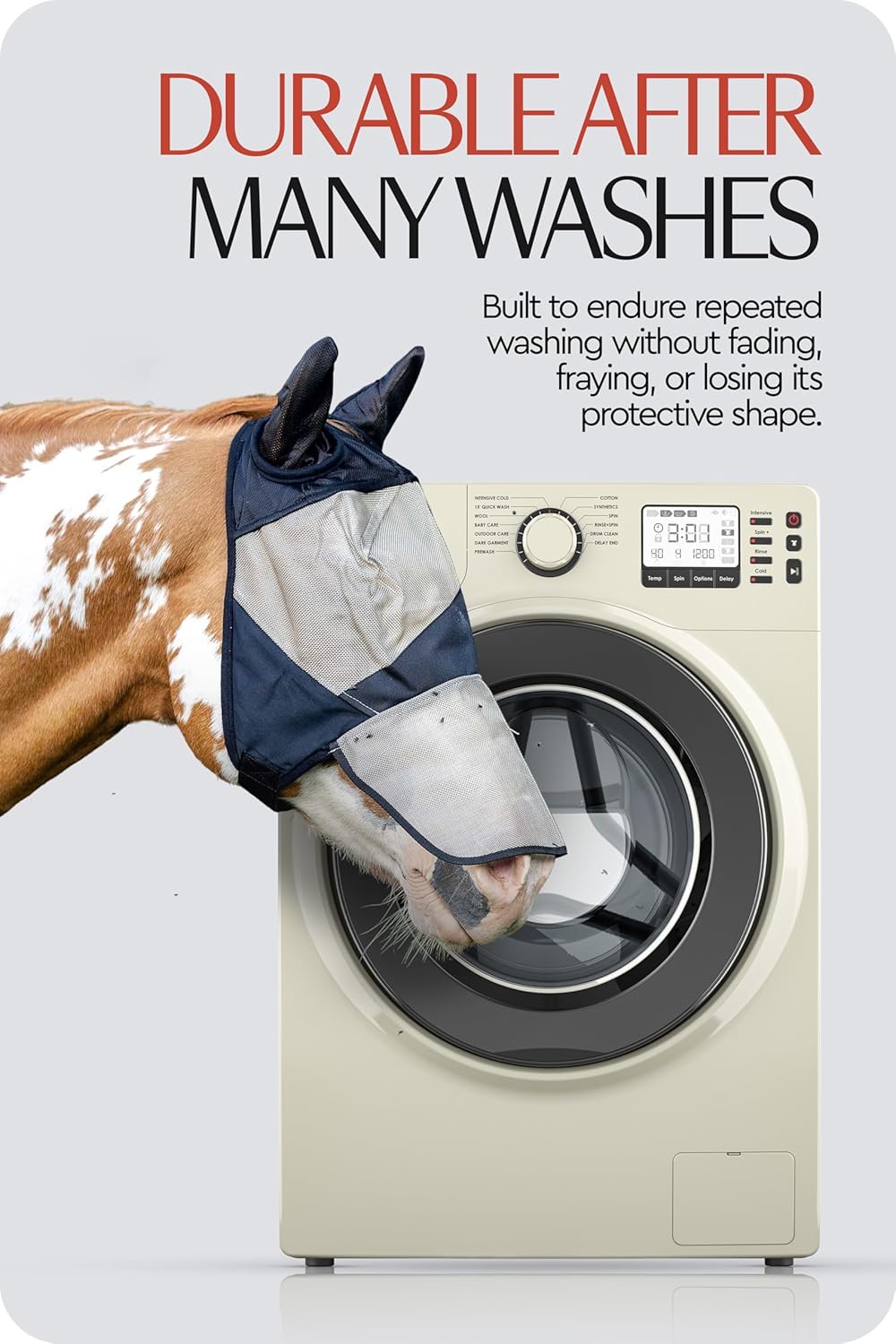 I have used this the last two summers and my horse is brutal on her masks. But this lasts a full year and her all white nose no longer gets sunburned and you can see very comfortably out of it and she won’t spook when I walk up. Plus it’s a great price.
