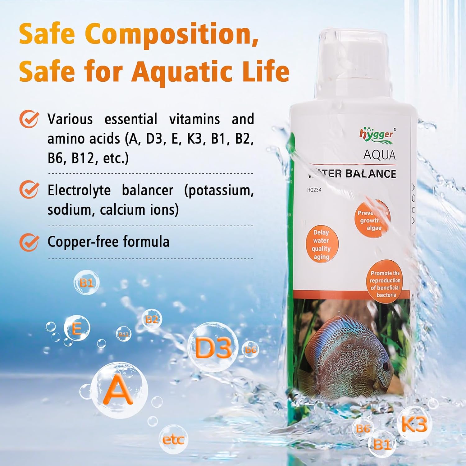 hygger Aqua Water Balance for Freshwater Saltwater, Aquarium Fish Tank Plant Coral Stabilizes Water Quality with Essential Vitamins Amino Acids Electrolyte Water Conditioner, 300 ML