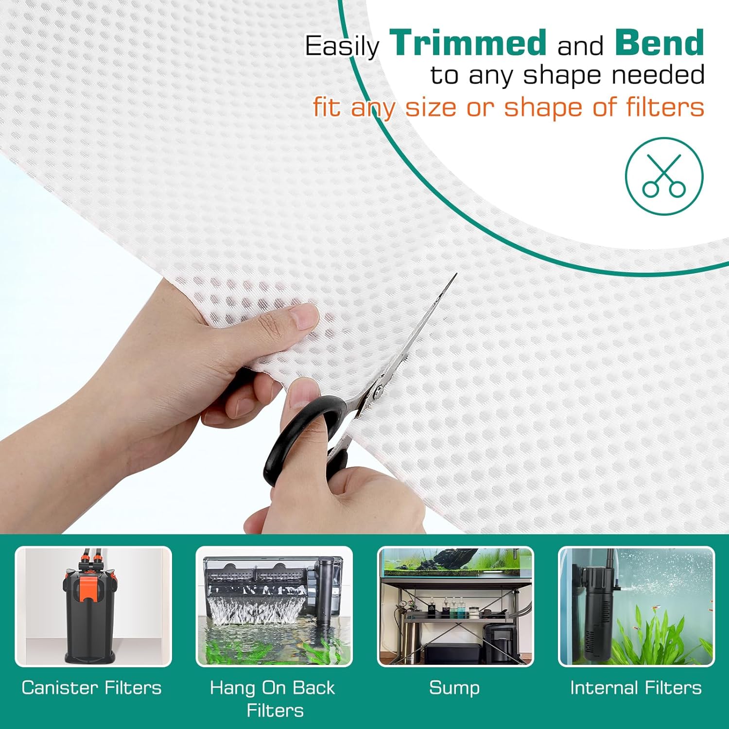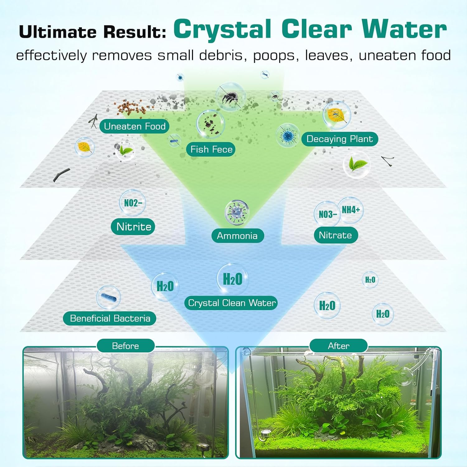 Superior Mechanical Filtration: With the massive amount of voids or holes, fish tank filter floss captures any floating organic material, debris like leftover food and fish waste and tiny particles in the water column, thus creating clean clear water quickly and effectively.