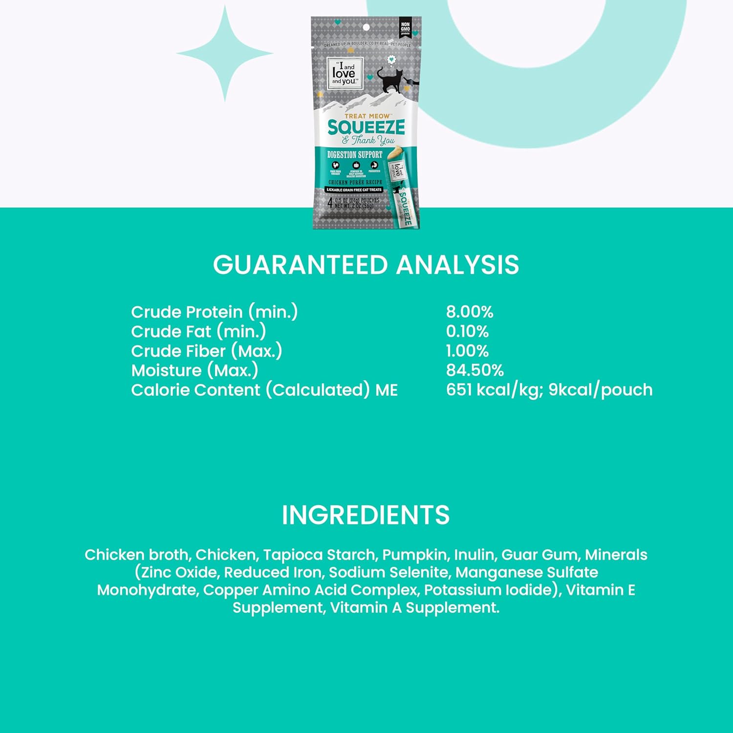 I AND LOVE AND YOU Treat Meow Lickable Cat Treats – Chicken Puree – Digestion Support, Squeeze Treat, 0.5oz, 4ct