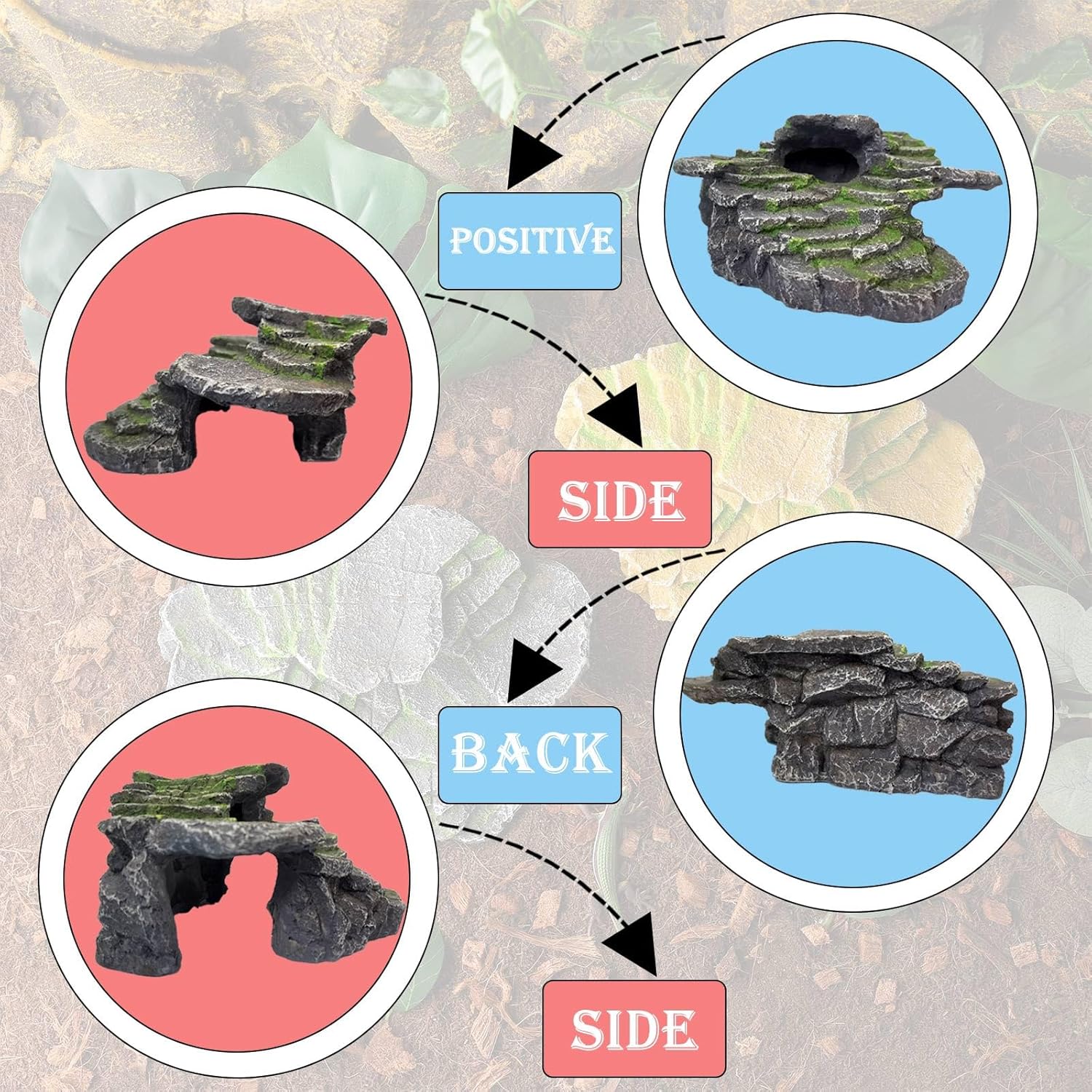 IBWell Reptile Hideout Resin Simulation Stone Climbing Accessories for Habitat Bearded Dragon Hides and Caves Aquarium Hiding Places for Lizard Spider Gecko Frog Turtle