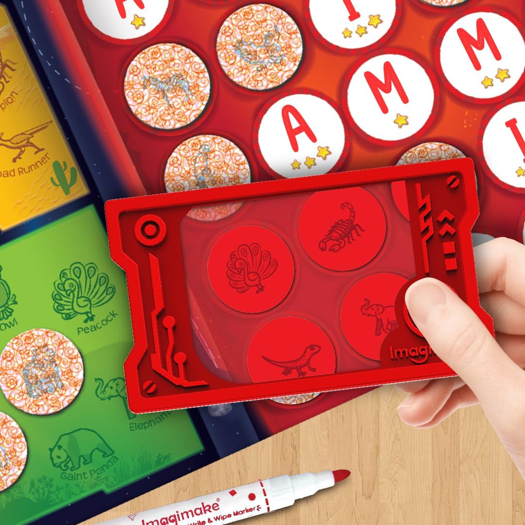 WHAT’S INCLUDED: 40 Animal Mission Tokens, 1 Discovery Lens, 1 Magnetic Board, 1 Spinner, 1 Write & Wipe Marker, and an Instruction Sheet to get you started on your space adventure