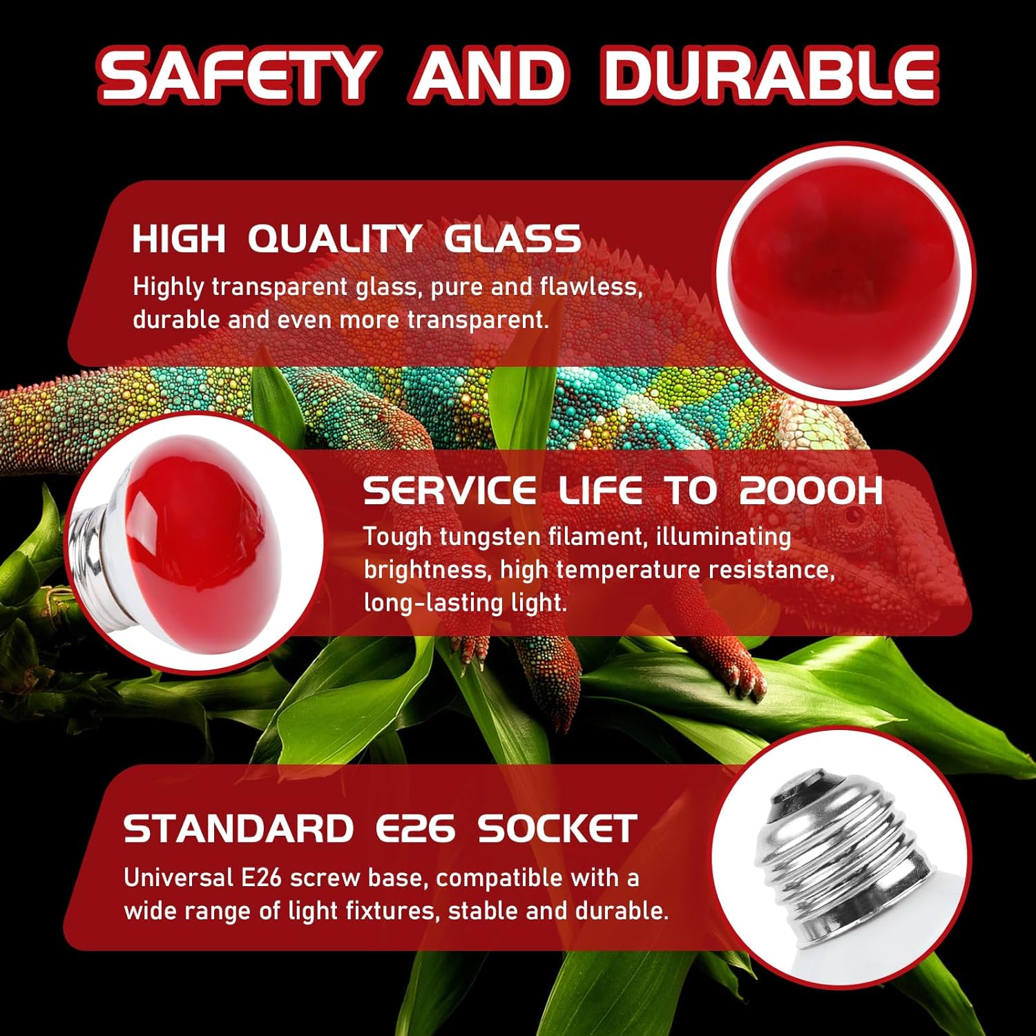 【Energy Conservation】 40 watt reptile heat bulb means lower power output, Save energy while providing enough heat. Suitable for reptile pets that are keep heat lamp irradiate for longer time.