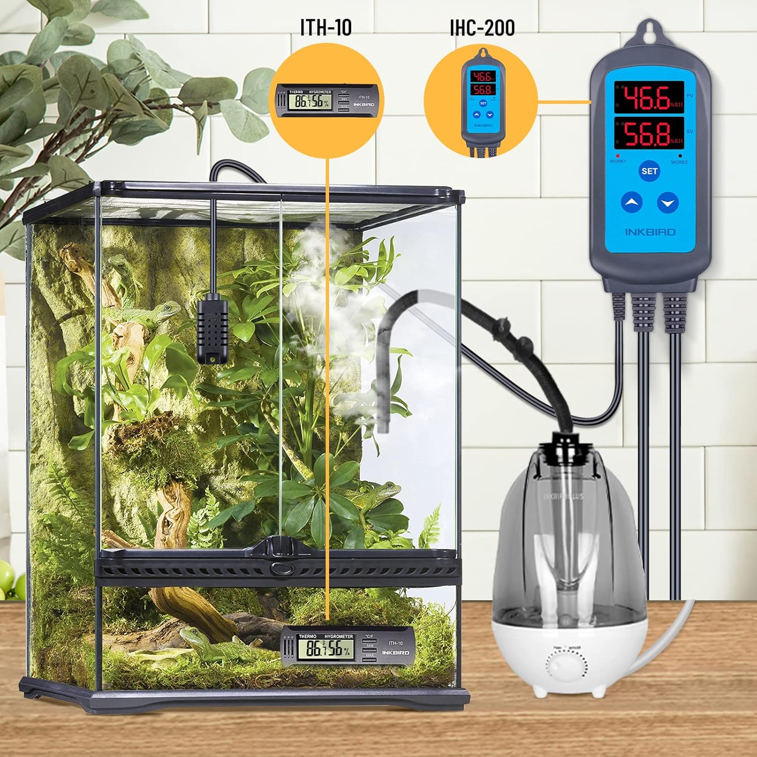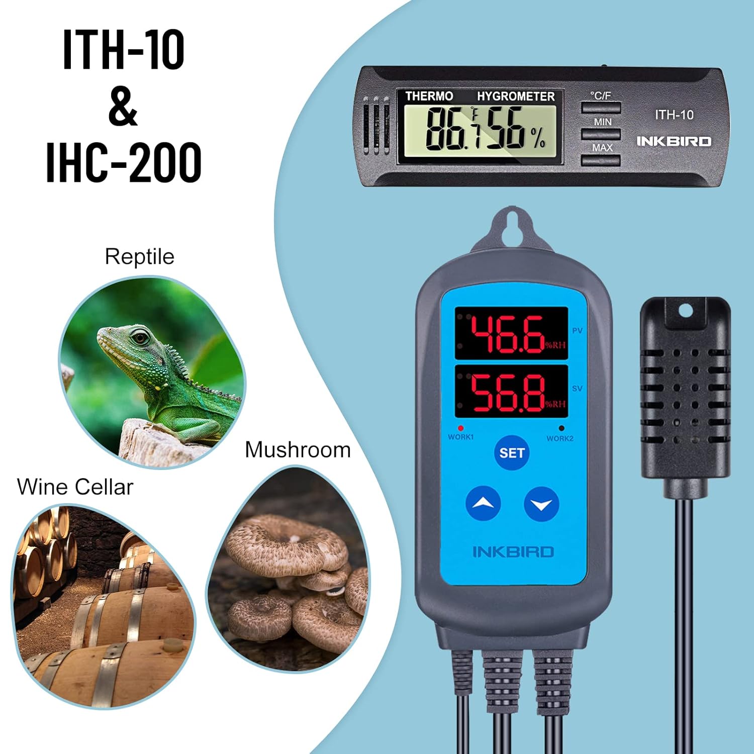 8 reviews for INKBIRD Humidity Controller Combo with ITH-10 Mini Digital Thermometer and Hygrometer for Guitar Ukulele Mason Jar, IHC-200 Pre Wired Outlet Dual Stage Humidistat for Mushroom Greenhouse Reptiles