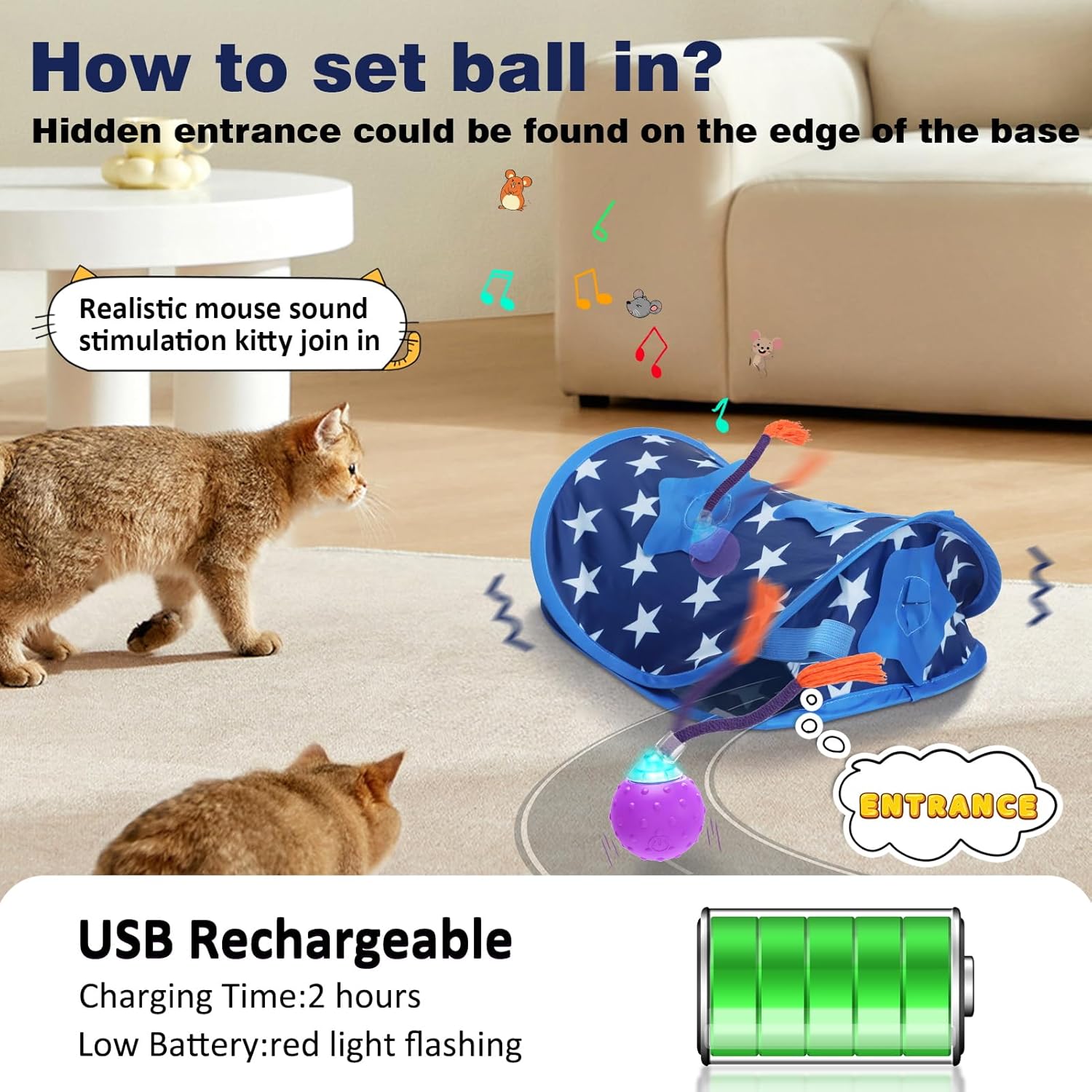 Interactive Cat Toys Hide-and-Seek, Touch to Activate, Quickly Roll in The Brood Bag, Real Mouse Squeaking Sound, The Best Cat Toy for Bored Indoor Cats