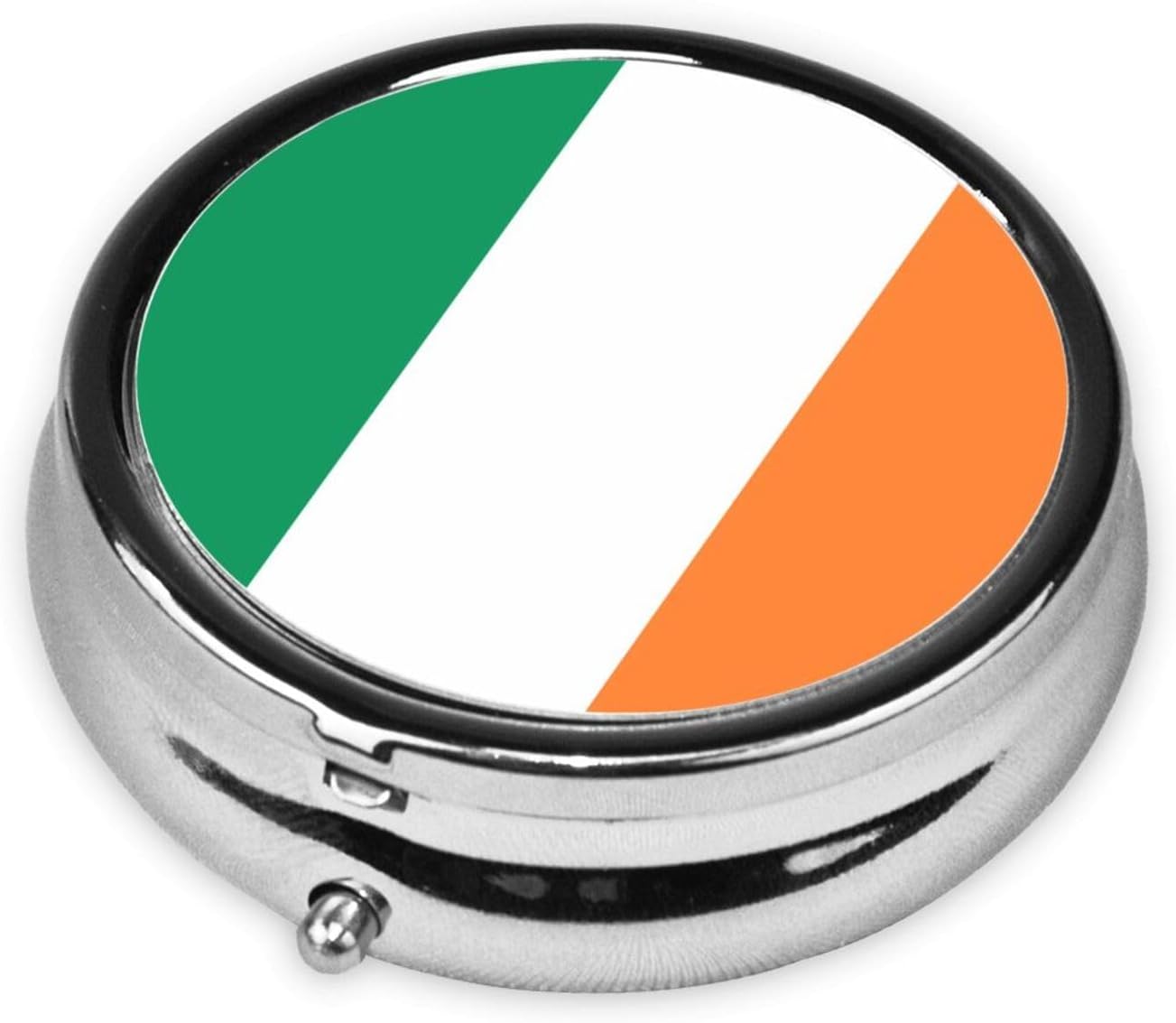 Irish flag Stay organized and stylish with this Round Pill Box – a portable medicine storage container perfect for vitamins, supplements, fish oil, and more. Designed with a full-print exterior, this pill box is not just functional but also a fashionable addition to your daily routine. Made from durable electroplated metal iron, it offers a premium feel and long-lasting performance.